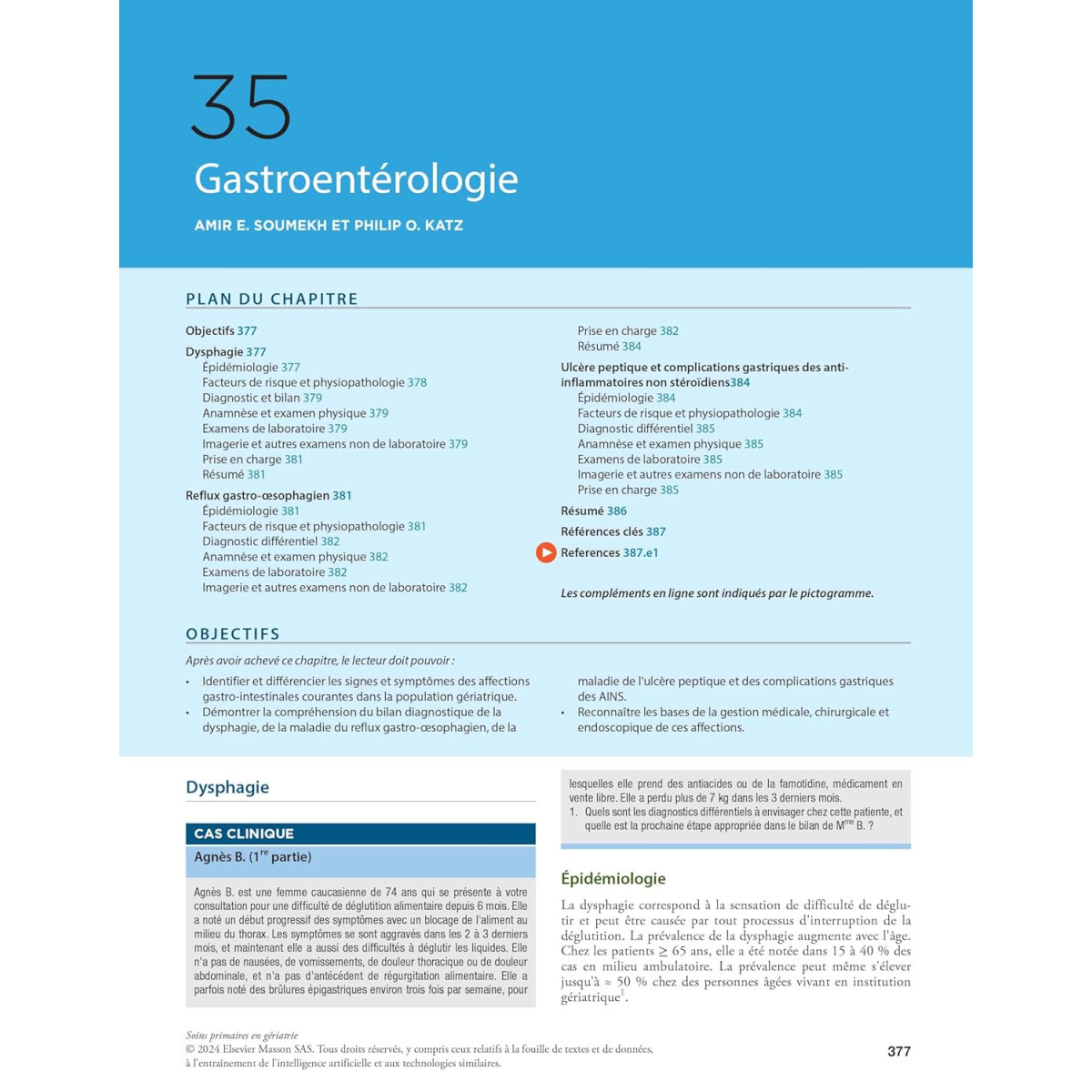 Grâce à une approche unique fondée sur de nombreux cas cliniques, il couvre un large panel de patients et de pathologies. Pour chaque cas, il propose des informations cliniques clés, des conseils d'experts et des directives médicales fondées sur des preuves. L'approche interdisciplinaire souvent proposée permet une meilleure stratégie de diagnostic, de traitement et de prise en charge pour répondre aux besoins complexes des sujets âgés.