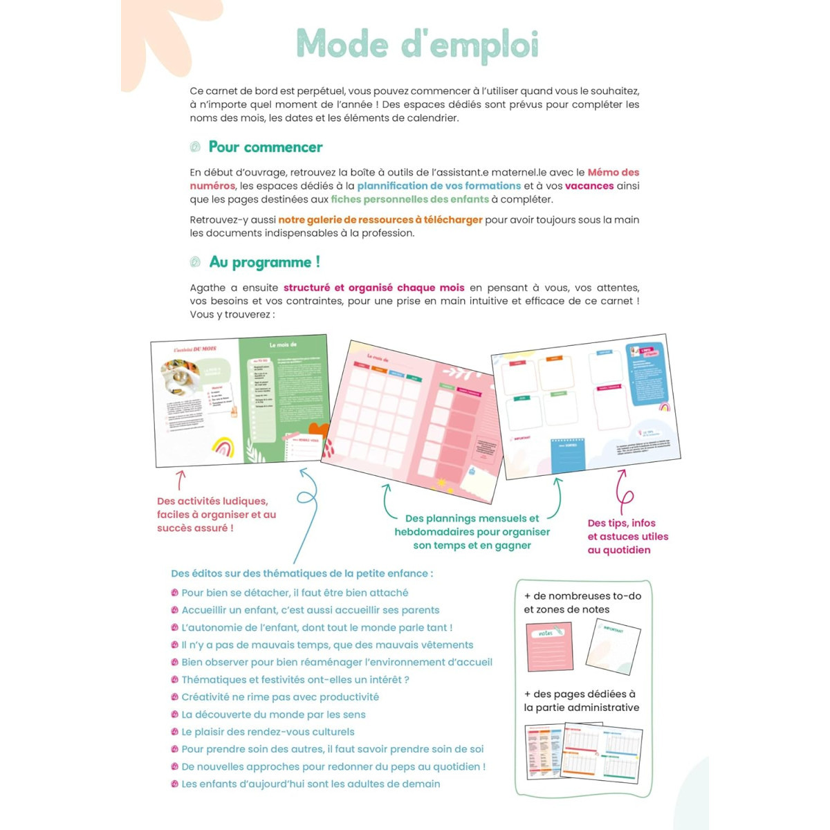 Un carnet de bord pour simplifier la vie des assistant.e.s maternel.le.s toute l'année et avoir une organisation au TOP sans oublier de penser à soi !