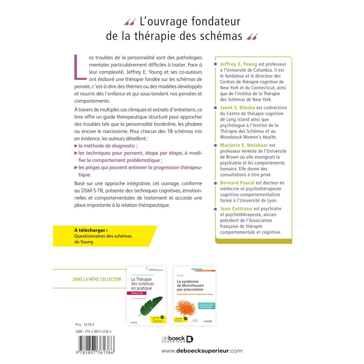 Les troubles de la personnalité sontdes pathologies mentales particulièrement difficiles à traiter. Face à leur complexité, Jeffrey E. Young et ses co-auteurs ont élaboré une thérapie fondée sur les schémas de pensée, c’est-à-dire des thèmes ou des modèles développés et nourris dès l’enfance et qui sous-tendent nos pensées et comportements.