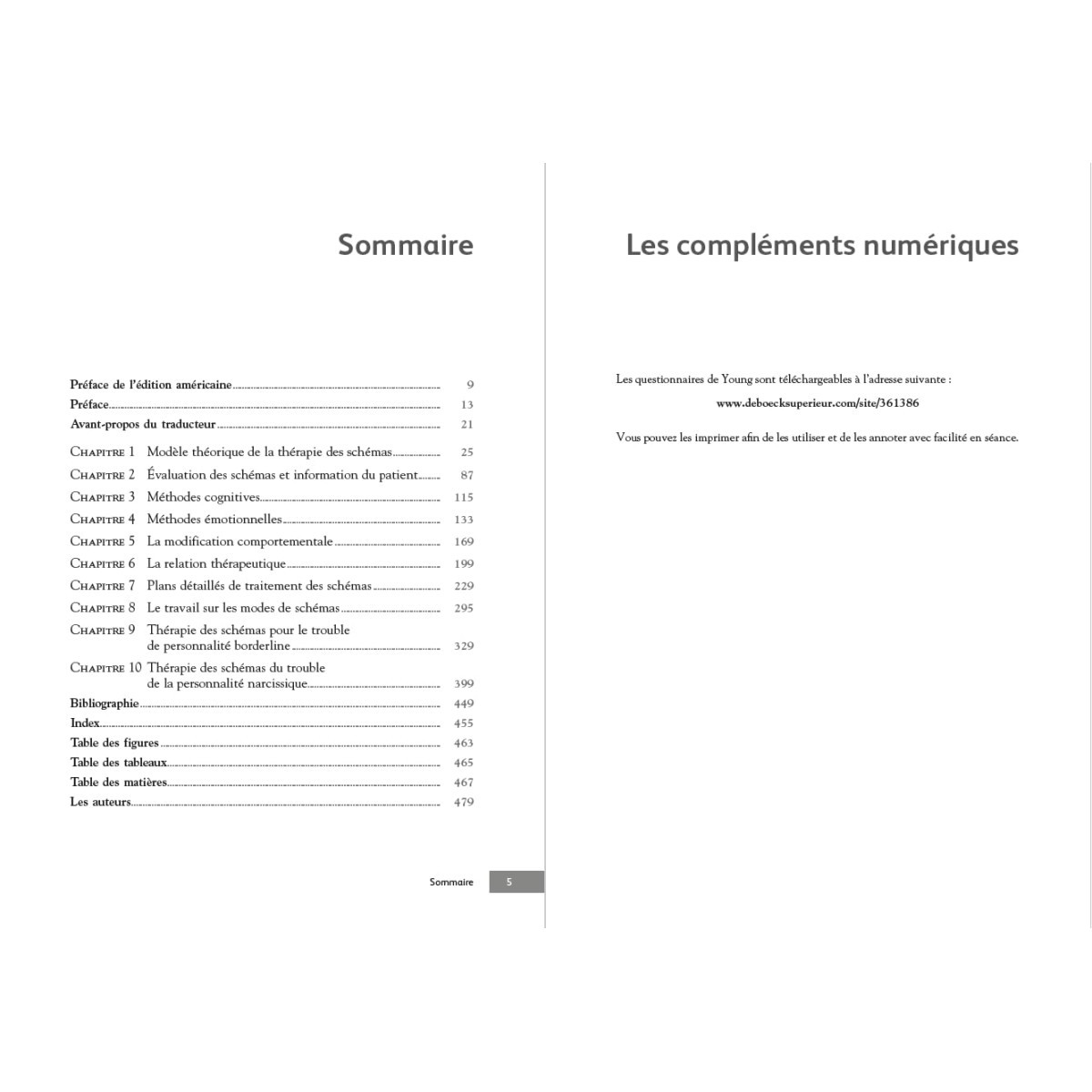 À travers de multiples cas cliniques et extraits d’entretiens, La thérapie des schémas offre un guide thérapeutique structuré et innovant pour approcher, par exemple, le trouble de la personnalité borderline, les phobies ou encore le narcissisme. Pour chacun des schémas mis en évidence y sont détaillés :