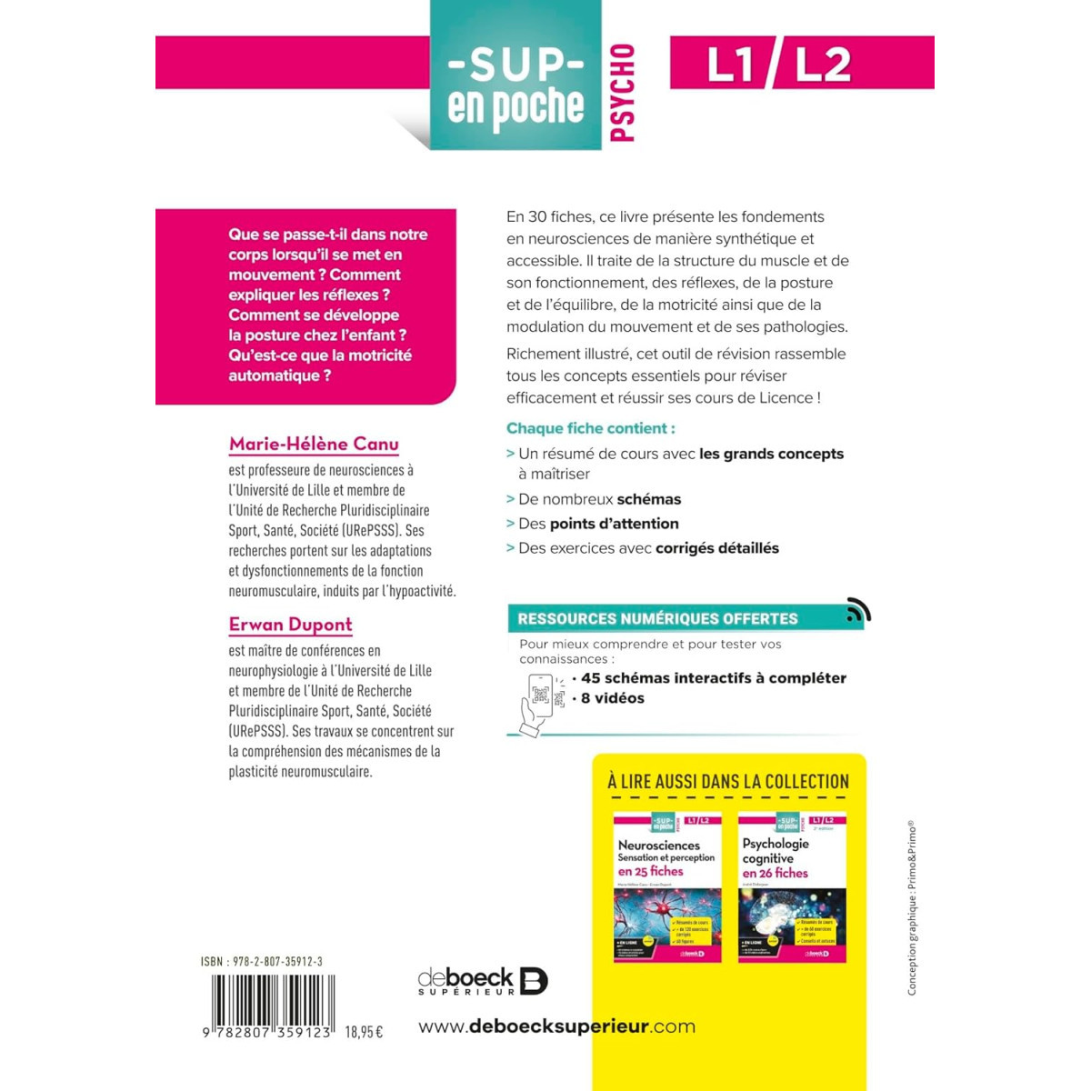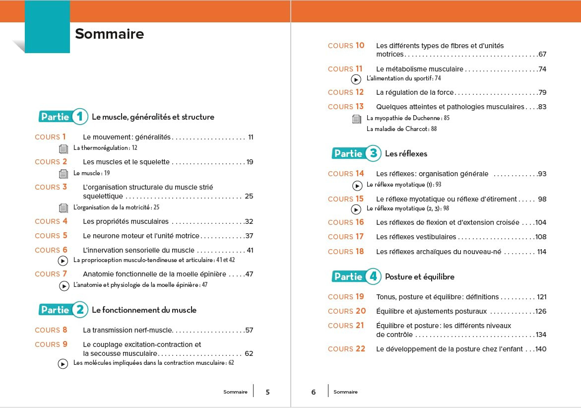 En 30 fiches, ce livre présente les fondements en neurosciences de manière synthétique et accessible. Il traite de la structure du muscle et de son fonctionnement, des réflexes, de la posture et de l’équilibre, de la motricité ainsi que de la modulation du mouvement et de ses pathologies.