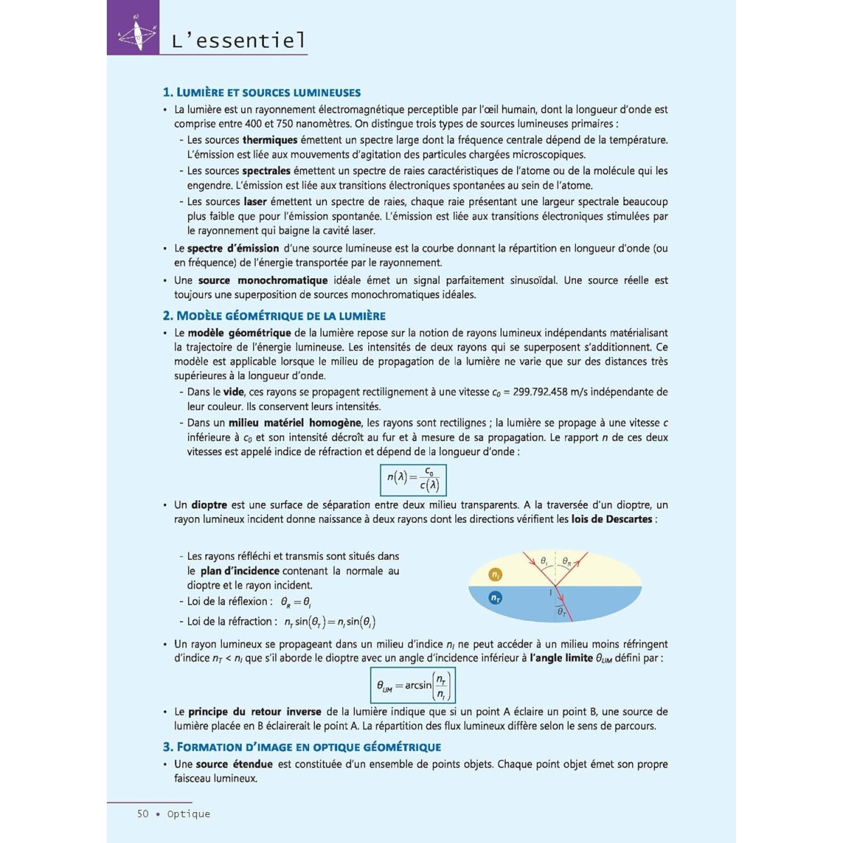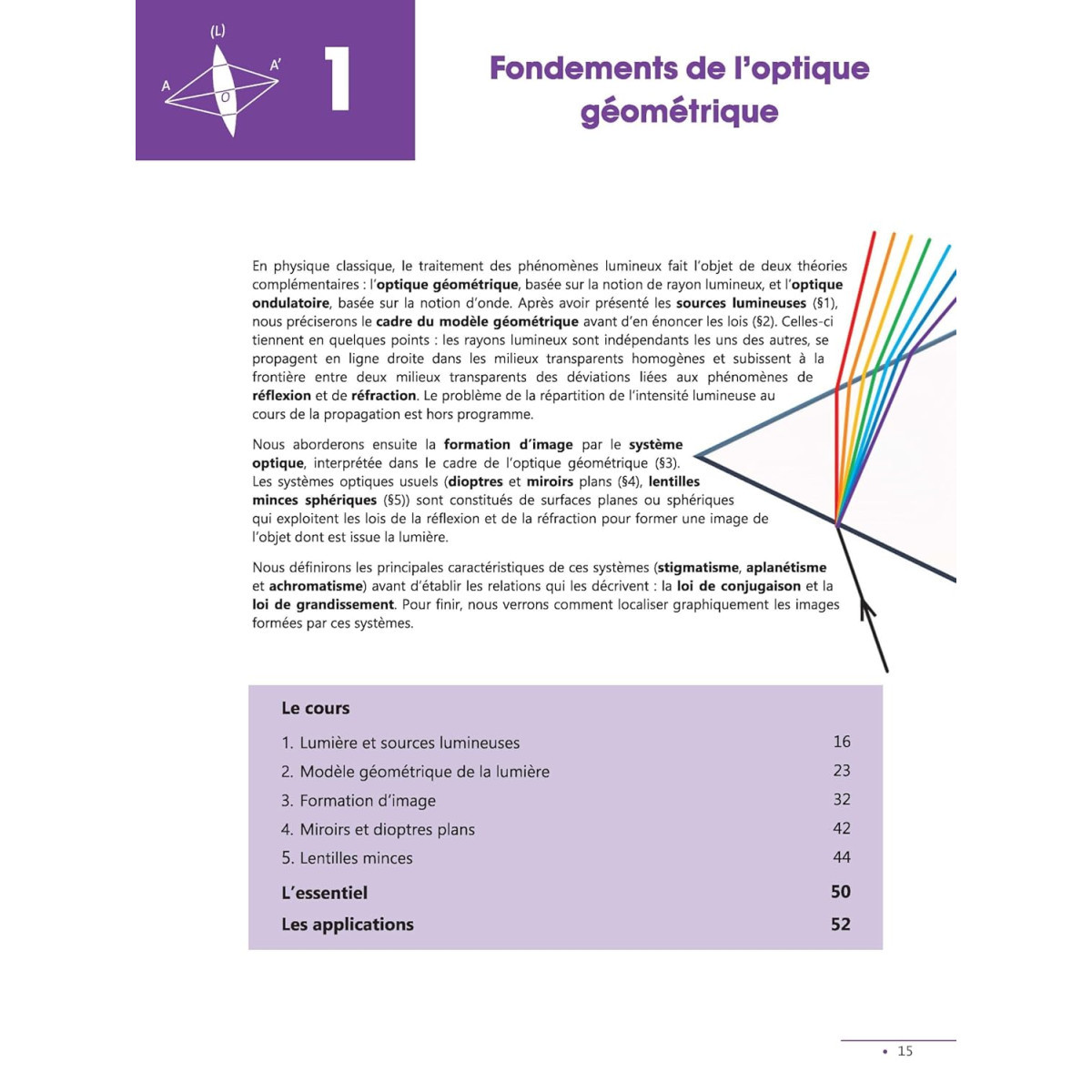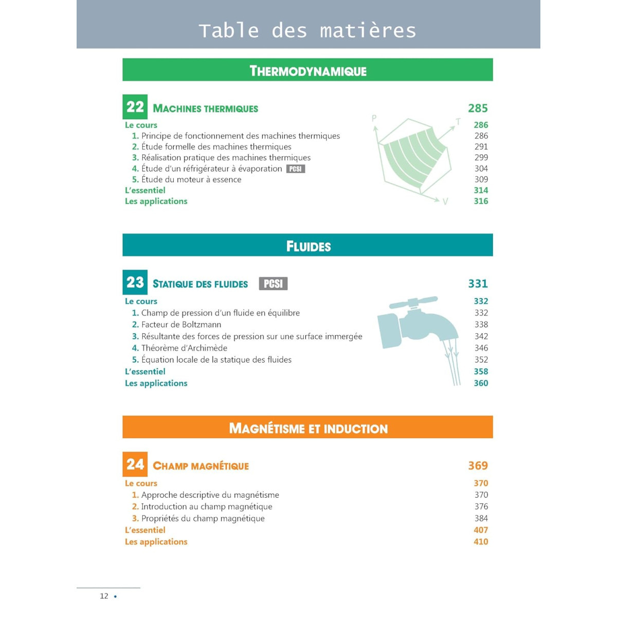 4 parties (Optique, Électrocinétique, Ondes et Mécanique) identifiées par des onglets colorés.