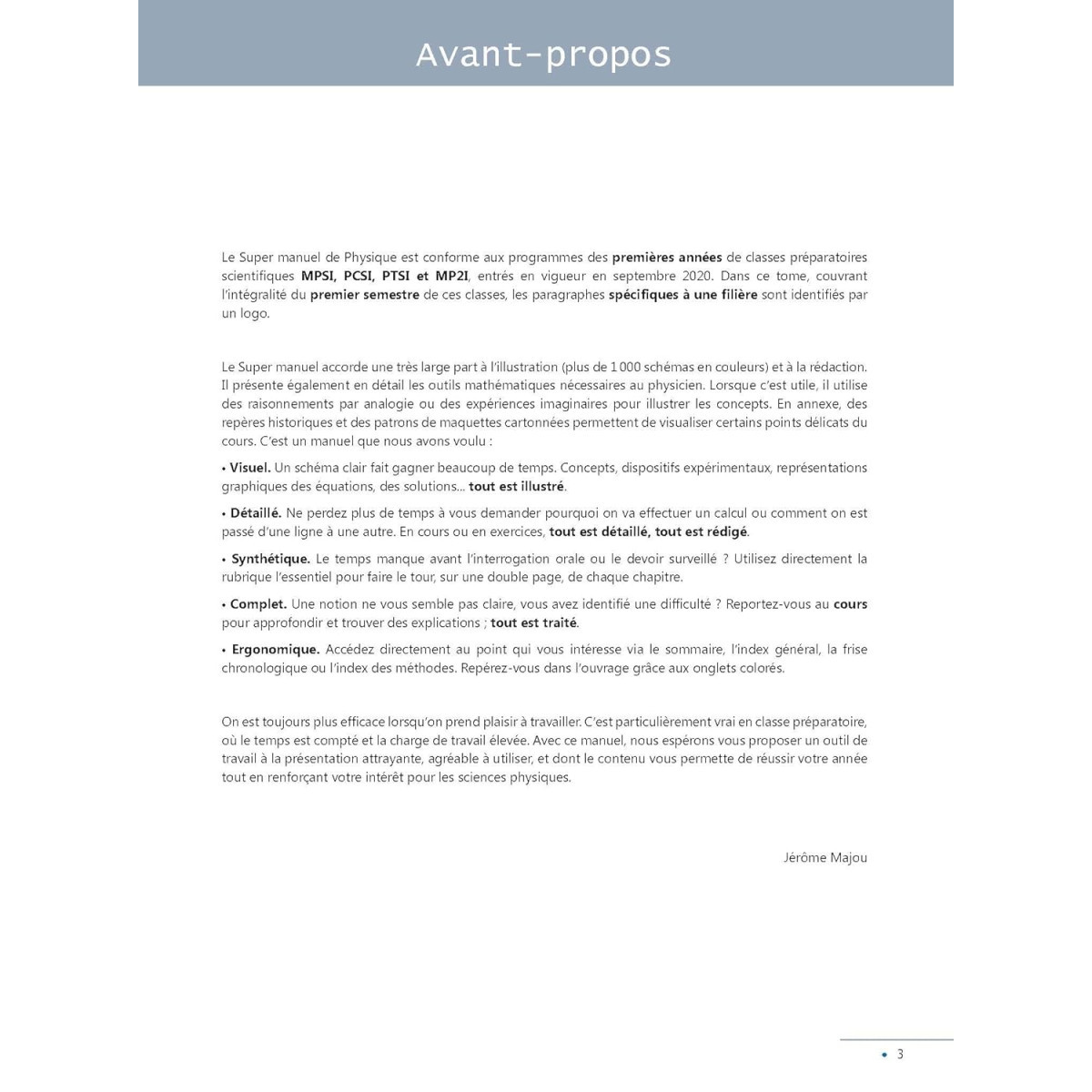 C’est le manuel qui vous redonne le plaisir de travailler ! Reposant sur une pédagogie innovante, il exploite de nombreux supports visuels, des expériences réelles ou imaginaires et des démonstrations dynamiques, commentées « comme en classe ». Concepts, dispositifs expérimentaux, tout est illustré, tout est commenté. La signalétique abondante permet de hiérarchiser les connaissances et d’identifier les contenus spécifiques à une filière.