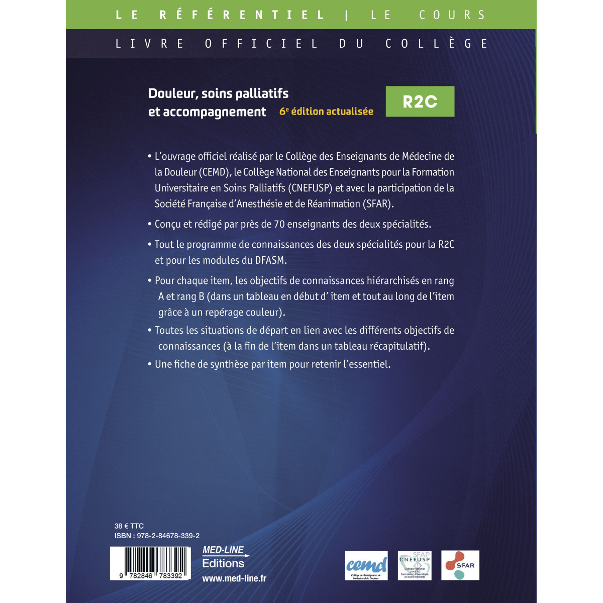 L’ouvrage officiel réalisé par le Collège National des Enseignants de Médecine de la Douleur (CEMD), le Collège National des Enseignants pour la Formation Universitaire en Soins Palliatifs (CNEFUSP) et avec la participation de la Société Française d'Anesthésie et de Réanimation (SFAR).