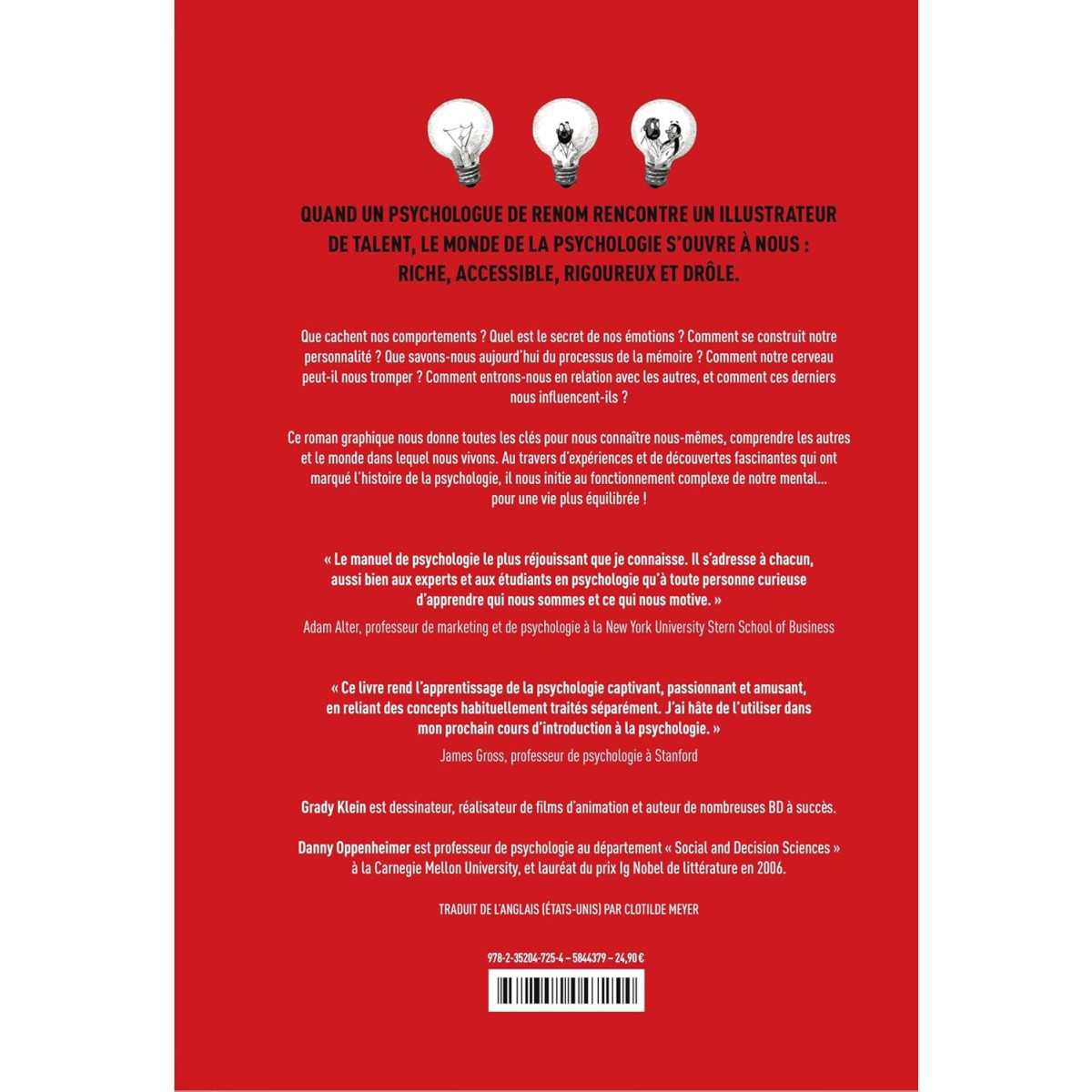 QUAND UN PSYCHOLOGUE DE RENOM RENCONTRE UN ILLUSTRATEUR DE TALENT, LE MONDE DE LA PSYCHOLOGIE S'OUVRE À NOUS : RICHE, ACCESSIBLE, RIGOUREUX ET DRÔLE. Que cachent nos comportements ? Quel est le secret de nos émotions ? Comment se construit notre personnalité ? Que savons-nous aujourd'hui du processus de la mémoire ? Comment notre cerveau peut-il nous tromper ? Comment entrons-nous en relation avec les autres, et comment ces derniers nous influencent-ils ? Ce roman graphique nous donne toutes les clés pour nous connaître nous-mêmes, comprendre les autres et le monde dans lequel nous vivons. Au travers d'expériences et de découvertes fascinantes qui ont marqué l'histoire de la Psychologie, il nous initie au fonctionnement complexe de notre mental... pour une vie plus équilibrée ! " Le manuel de Psychologie le plus réjouissant que je connaisse. Il s'adresse à chacun, aussi bien aux experts et aux étudiants en Psychologie qu'à toute personne curieuse d'apprendre qui nous sommes et ce qui nous motive. " Adam Alter, professeur de Marketing et de Psychologie à la New York University Stern School of Business " Ce livre rend l'apprentissage de la psychologie captivant, passionnant et amusant, en reliant des concepts habituellement traités séparément. J'ai hâte de l'utiliser dans mon prochain cours d'introduction à la Psychologie. " James Gross, professeur de Psychologie à Stanford.
