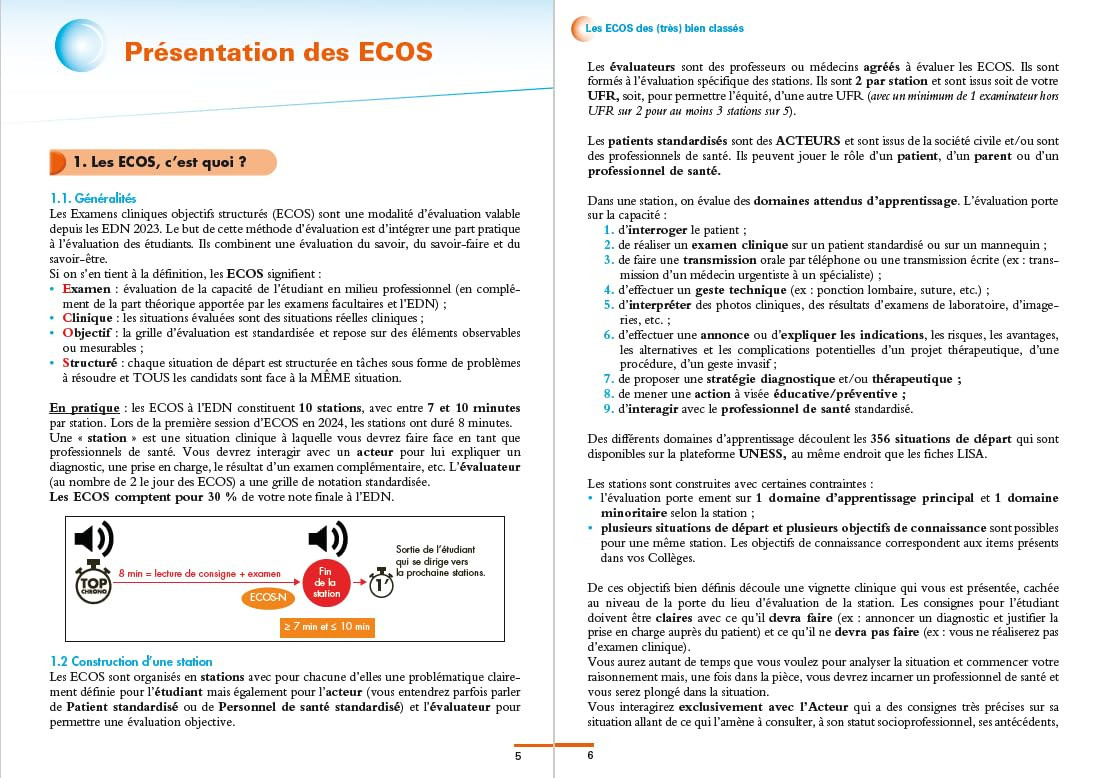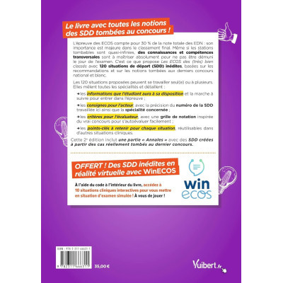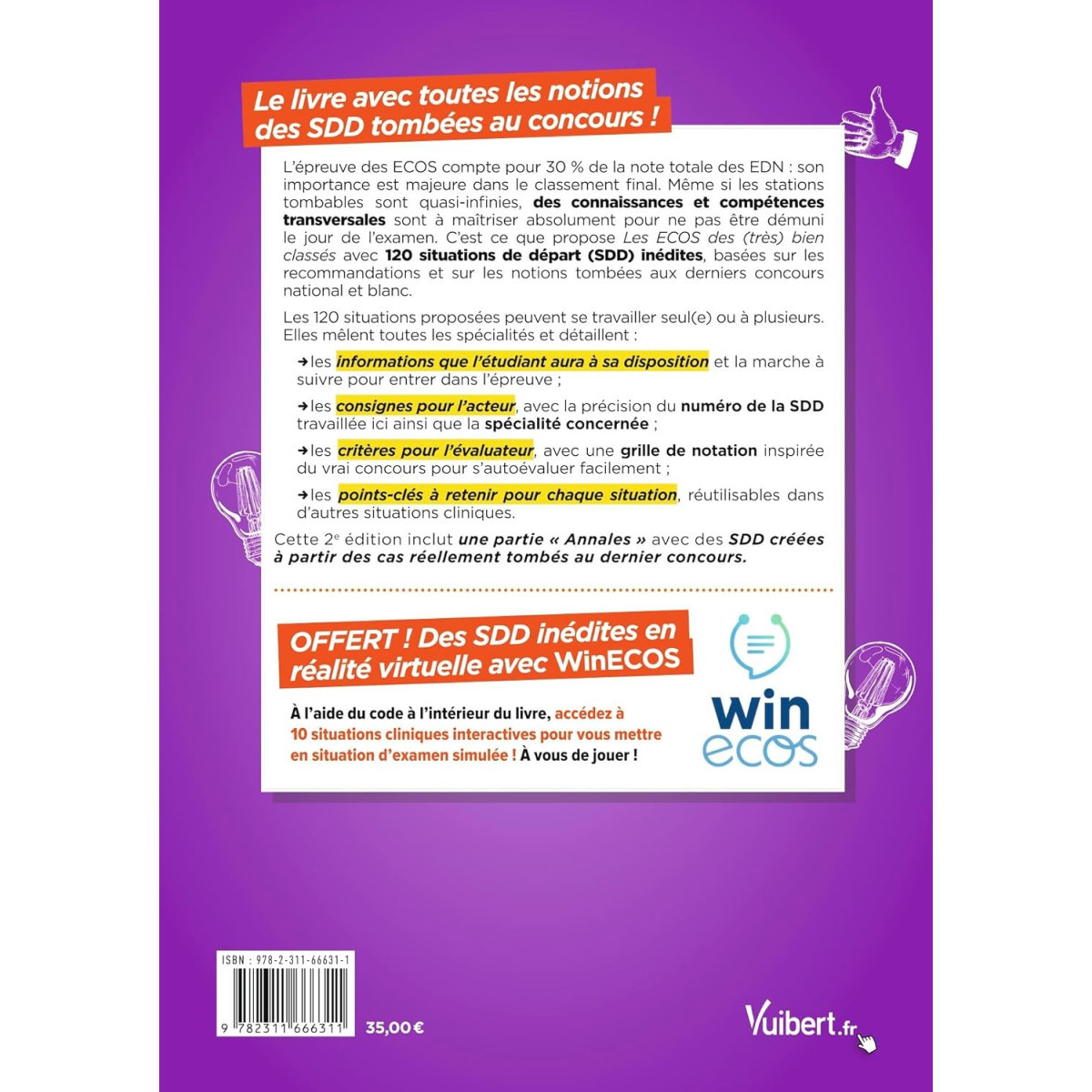 Depuis 2024, cette épreuve des EDN compte pour 30% de la note finale au concours qui vient clôturer 6 années d'études médicales. Les ECOS constituent une épreuve où les possibilités des cas cliniques sont quasi infinies. Cependant, des connaissances et compétences transversales sont à maîtriser. C'est ce que propose Les ECOS des (très) bien classés avec 120 situations de départ (SDD) inédites, classés en 2 parties : les annales des notions tombées aux ECOS nationaux et blancs et les SDD basées sur les référentiels de cours pour continuer l'entraînement.