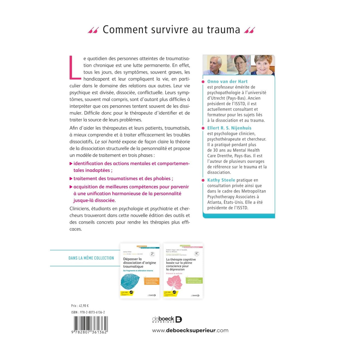 Afin d’aider les thérapeutes et leurs patients, traumatisés, à mieux comprendre et à traiter efficacement les troubles dissociatifs, Le soi hanté expose de façon claire la théorie de la dissociation structurelle de la personnalité et propose un modèle de traitement en trois phases :