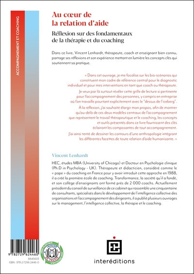 Fort de de plus de 30 ans d’expérience professionnelle en tant que thérapeute et coach, l’auteur parle en profondeur ce qui fait la substance de son métier et les composantes de la relation d’aide. Il restitue le coaching et la thérapie dans la relation d’aide et analyse la vision de l’homme sous-tendue par les différentes démarches en cours. Il transmet les clés d’une relation qui « sonne juste ».