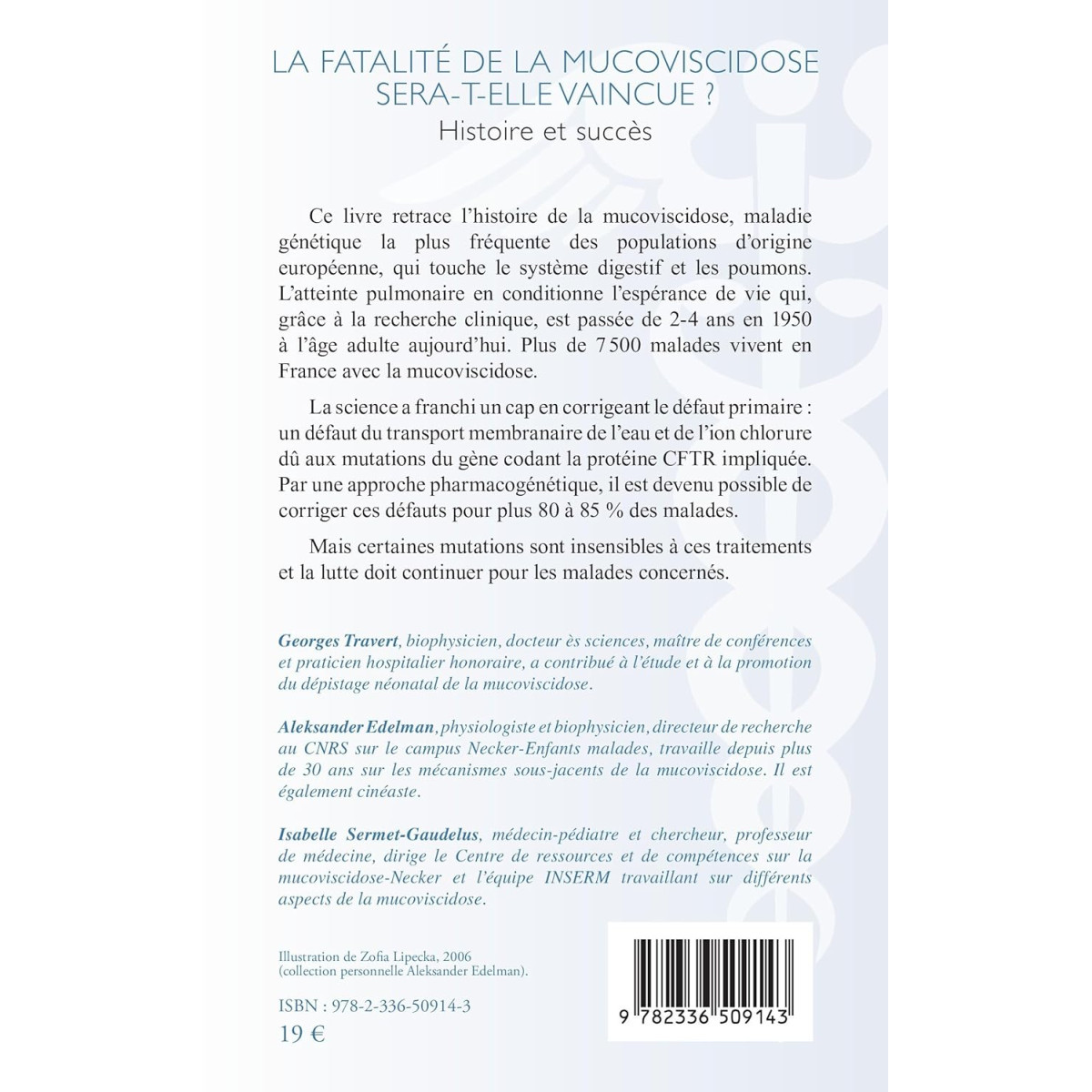 Ce livre retrace l’histoire de la mucoviscidose, maladie génétique la plus fréquente des populations d’origine européenne, qui touche le système digestif et les poumons. L’atteinte pulmonaire en conditionne l’espérance de vie qui, grâce à la recherche clinique, est passée de 2-4 ans en 1950 à l’âge adulte aujourd’hui. Plus de 7 500 malades vivent en France avec la mucoviscidose.