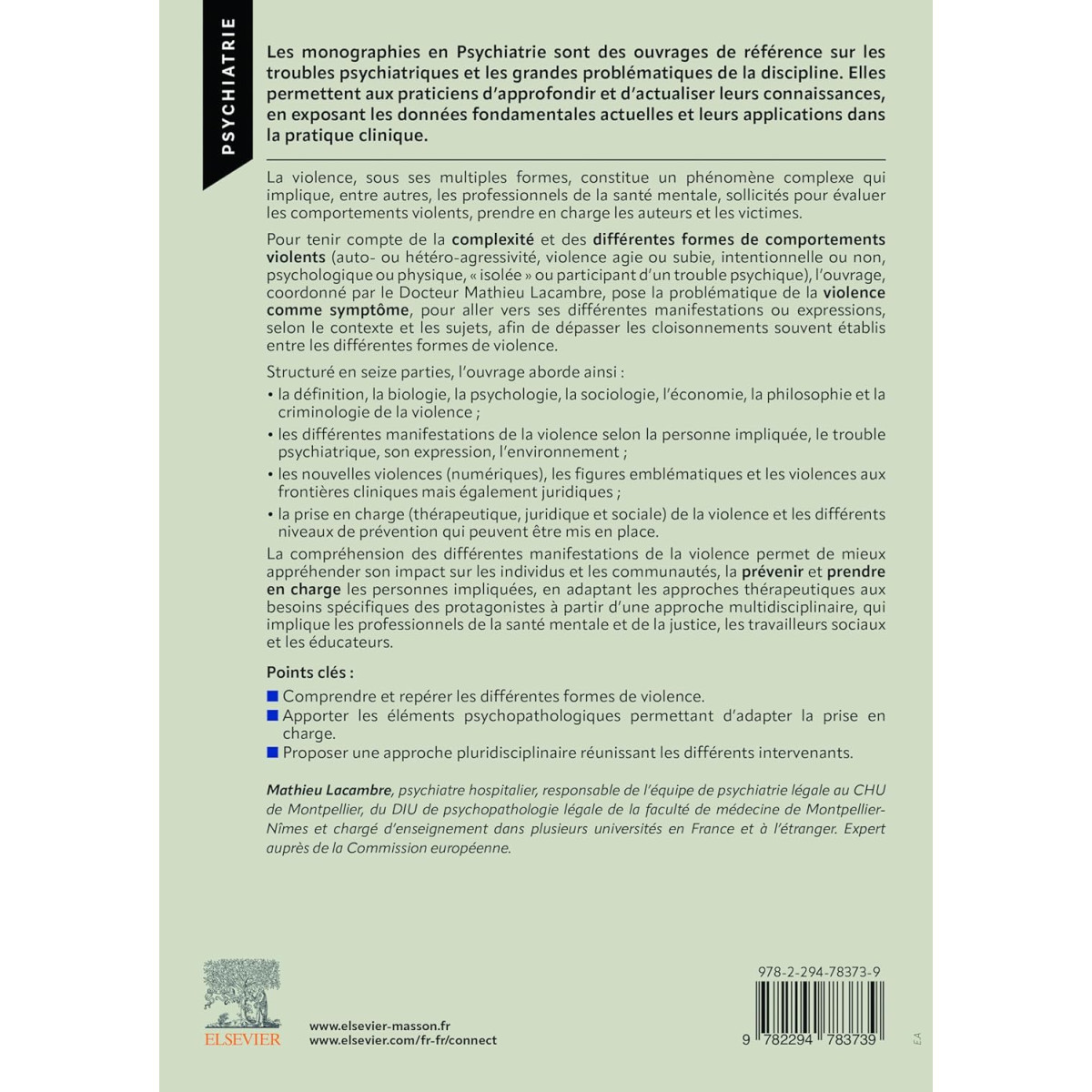 Pour tenir compte de la complexité et des différentes formes de comportements violents (auto- ou hétéro-agressivité violence agie ou subie, intentionnelle ou non, psychologique ou physique, ' isolée ' ou participant d'un trouble psychique), l'ouvrage coordonné par le Docteur Mathieu Lacambre pose la problématique de la violence comme symptôme pour aller vers ses différentes manifestations ou expressions selon le contexte et les sujets afin de dépasser les cloisonnements souvent établis entre les différentes formes de violence.