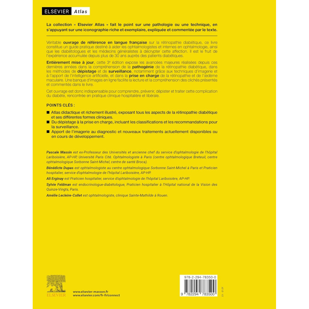 Véritable ouvrage de référence en langue française sur la rétinopathie diabétique, ce livre constitue un guide pratique destiné à aider les ophtalmologistes et internes en Ophtalmologie, ainsi que les diabétologues et les médecins généralistes à décrypter cette affection. Il est le fruit de l'expérience accumulée depuis plus de 30 ans auprès des patients diabétiques.Entièrement mise à jour, cette 3e édition expose les avancées majeures réalisées depuis ces dernières années dans la compréhension de la pathogénie de la rétinopathie diabétique dans les méthodes de dépistage et de surveillance, notamment grâce aux techniques d'Imagerie et à l'apport de l'Intelligence Artificielle, et dans la prise en charge de la rétinopathie et de l'œdème maculaire. Une banque d'images en ligne facilite la lecture et la compréhension des clichés présentés et commentés dans le livre.