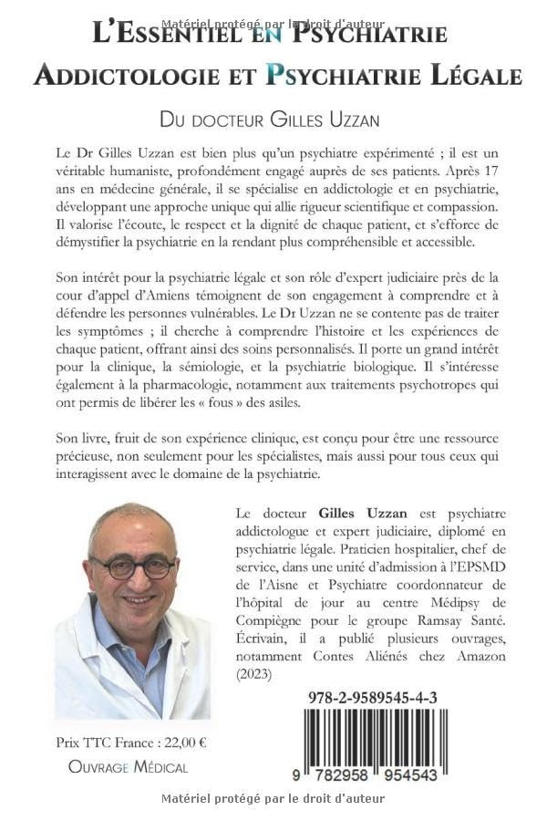 Son livre, fruit de son expérience clinique, est conçu pour être une ressource précieuse, non seulement pour les spécialistes, mais aussi pour tous ceux qui interagissent avec le domaine de la Psychiatrie.