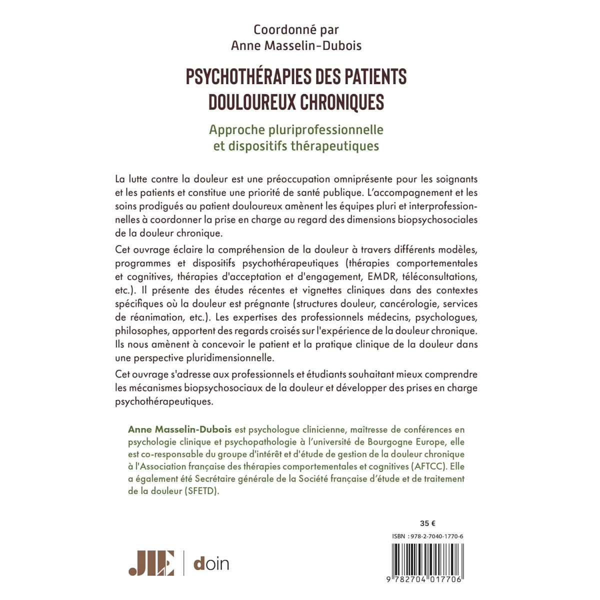 L'ouvrage souhaite éclairer la compréhension de la douleur à travers différents modèles psychothérapeutiques (thérapies comportementales et cognitives, thérapies d'acceptation et d'engagement, EMDR, etc.). Il présente des études récentes et vignettes cliniques dans des contextes spécifiques où la douleur est prégnante (structures douleur, Cancérologie, services de Réanimation, etc.). Les expertises des professionnels médecins, psychologues, philosophes apportent des regards croisés sur l'expérience de la douleur chronique.