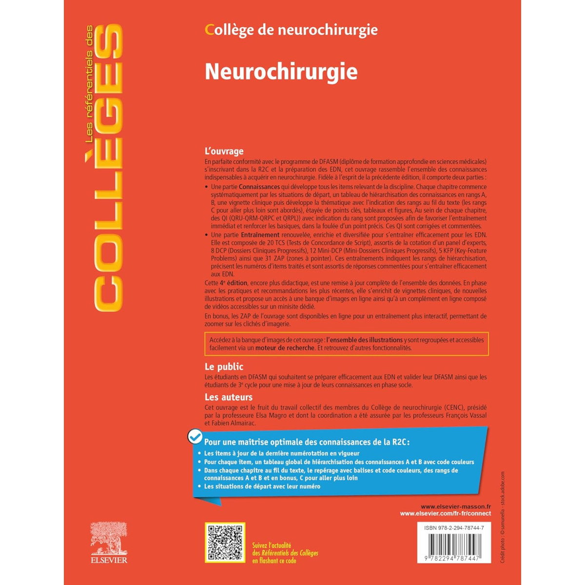 Cet ouvrage est le fruit du travail collectif des membres du Collège de Neurochirurgie (CENC) présidé par la professeure Elsa Magro et dont la coordination a été assurée par les professeurs François Vassal et Fabien Almairac.