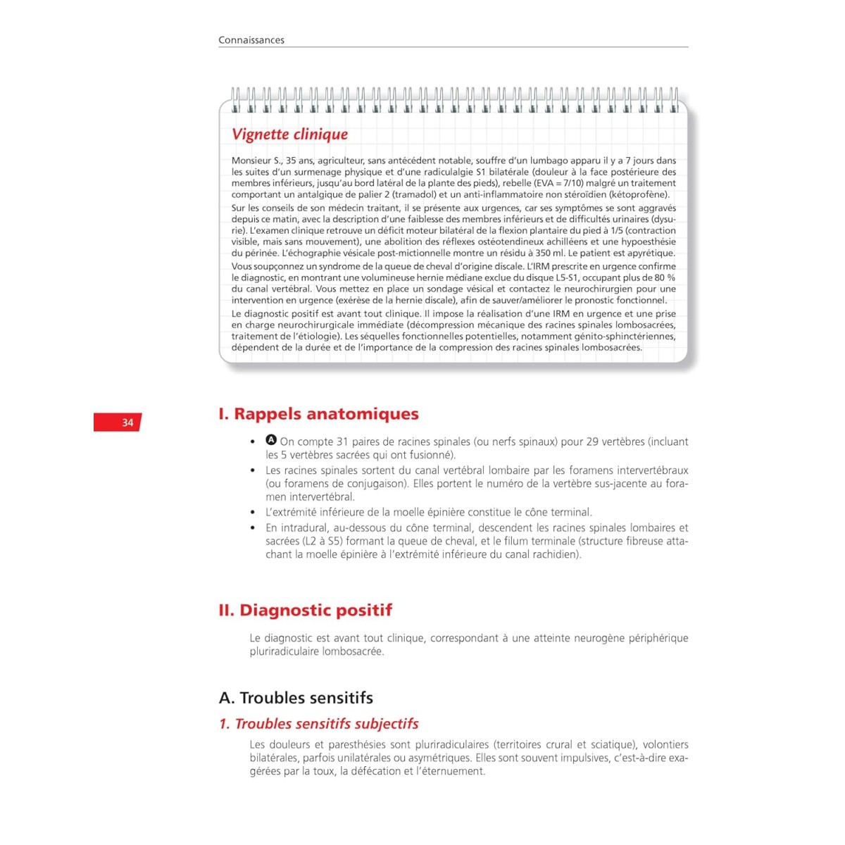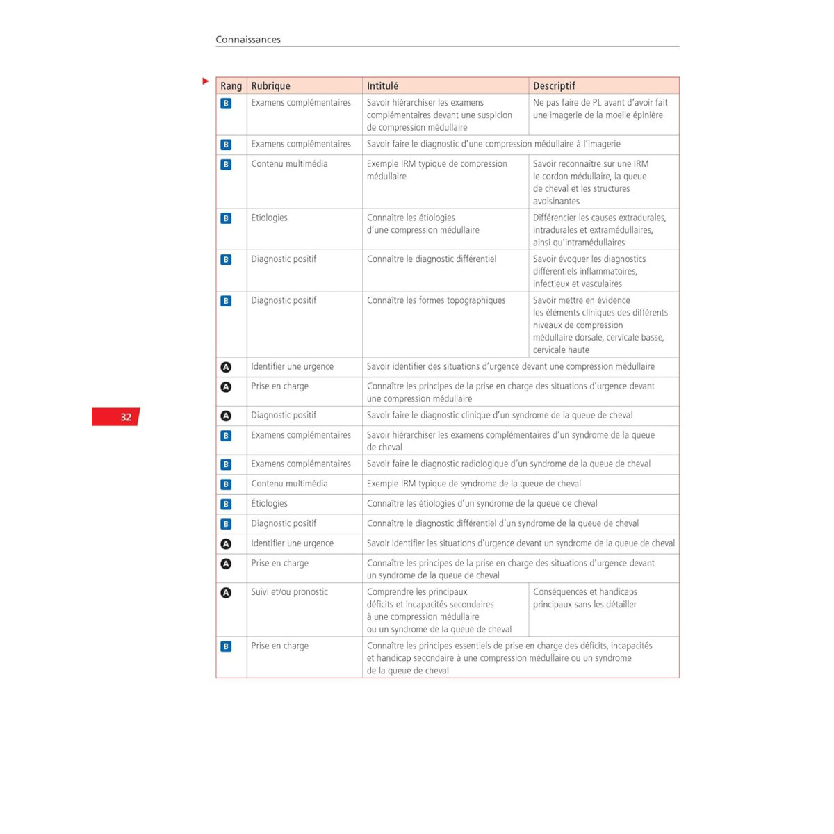 - Une partie Connaissances qui développe tous les items relevant de la discipline. Chaque chapitre commence systématiquement par les situations de départ, un tableau de hiérarchisation des connaissances en rangs A et B, une vignette clinique, puis développe la thématique avec l'indication des rangs au fil du texte (les rangs C pour aller plus loin sont abordés), étayée de points clés, tableaux et figures. Au sein de chaque chapitre, des QI (QRU-QRM-QRPC et QRPL)) avec indication du rang sont proposées afin de favoriser l'entraînement immédiat et renforcer les basiques dans la foulée d'un point précis. Ces QI sont corrigées et commentées.