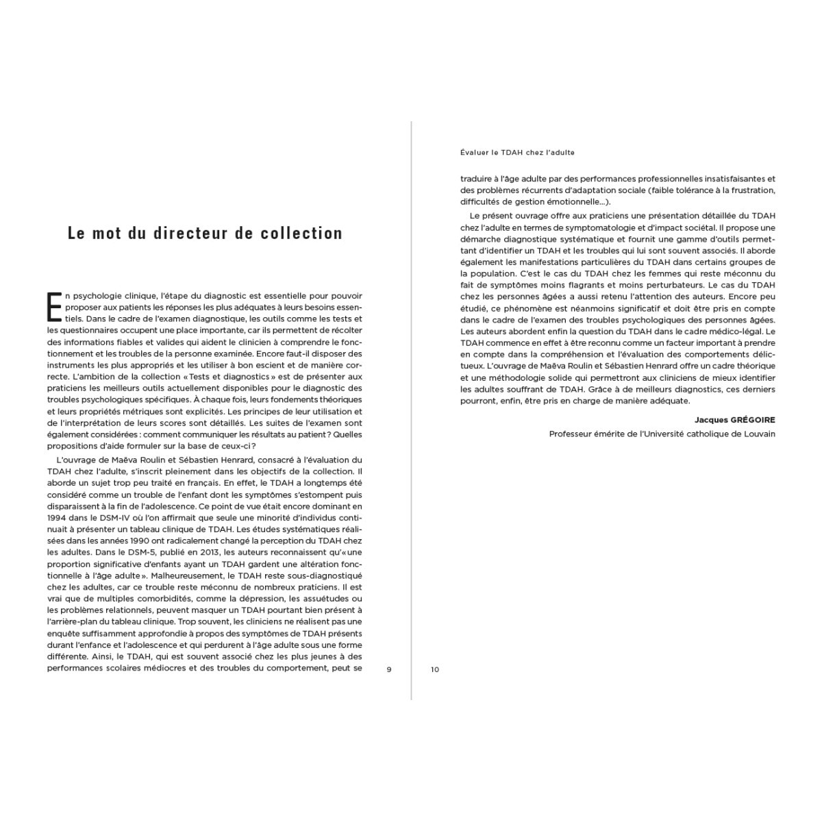 Bien qu’étudié depuis de nombreuses années, le trouble du déficit de l’attention avec ou sans hyperactivité (TDAH) demeure complexe à diagnostiquer et à évaluer, vu la diversité des profils et la multitude d’outils disponibles. Les bonnes pratiques sont encore méconnues de nombreux professionnels.Ce livre propose une méthode concrète pour accompagner le psychologue clinicien dans la réalisation des bilans du TDAH chez les adultes, y compris pour le diagnostic différentiel. Deux chapitres tout à fait originaux sont consacrés au TDAH chez la femme et au TDAH chez les personnes âgées.