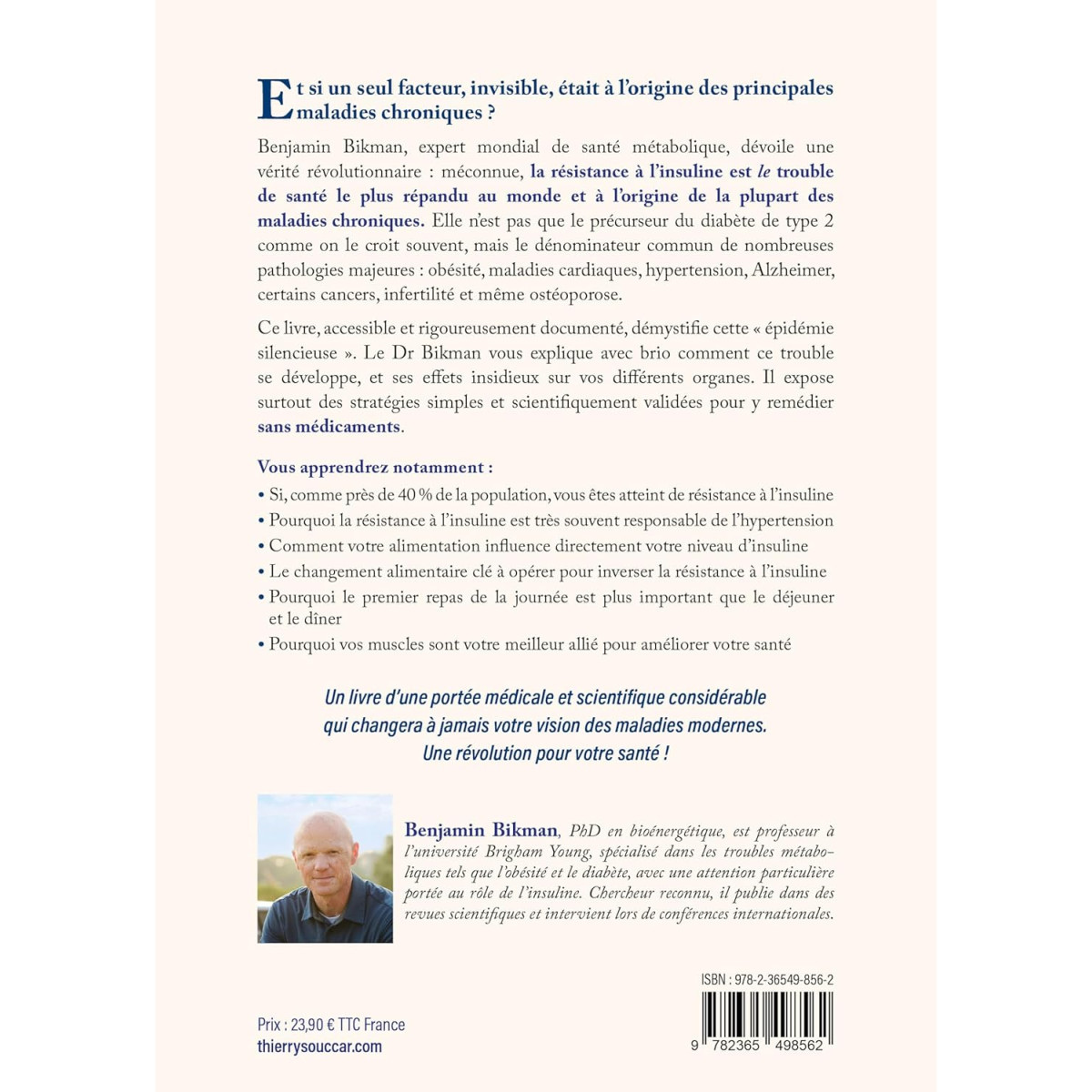 Benjamin Bikman, expert mondial de santé métabolique, dévoile une vérité révolutionnaire : méconnue, la résistance à l’insuline est LE trouble de santé le plus répandu au monde et à l’origine de la plupart des maladies chroniques. Elle n’est pas que le précurseur du diabète de type 2 comme on le croit souvent, mais le dénominateur commun de nombreuses pathologies majeures : obésité, maladies cardiaques, hypertension, Alzheimer, certains cancers, infertilité et même ostéoporose.Ce livre, accessible et rigoureusement documenté, démystifie cette « épidémie silencieuse ». Le Dr Bikman vous explique avec brio comment ce trouble se développe et ses effets insidieux sur vos différents organes. Il expose surtout des stratégies simples et scientifiquement validées pour y remédier sans médicaments.