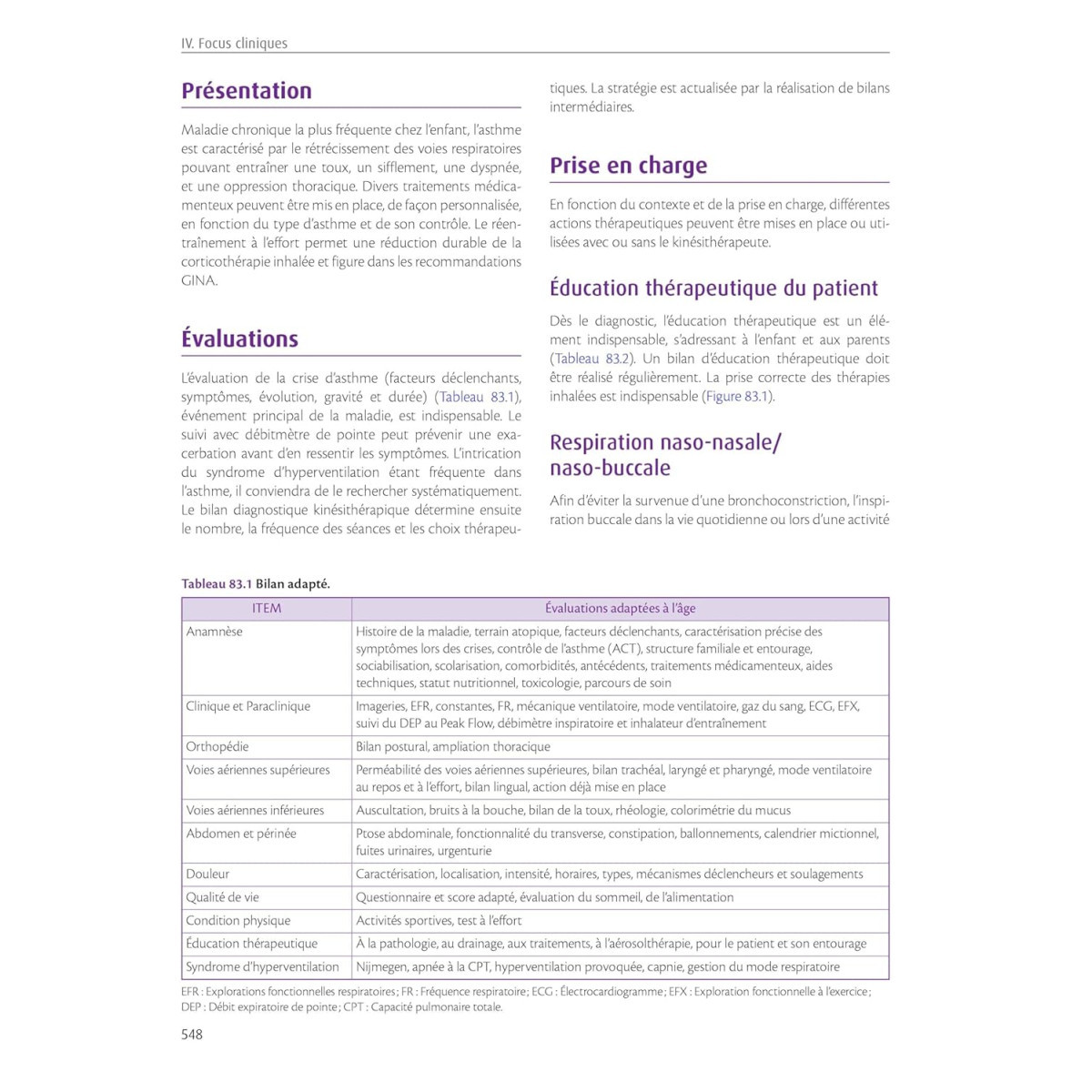 Cet ouvrage de référence en Kinésithérapie pédiatrique propose une approche interdisciplinaire et collaborative couvrant l'ensemble des pathologies de la prématurité à l'adolescence. Structuré selon les étapes du développement et les compétences de l'enfant, il associe repères théoriques et outils pratiques pour l'évaluation et la prise en charge. Les recommandations les plus récentes et les approches innovantes sont illustrées par des cas cliniques détaillés, et une dizaine de focus cliniques. Destiné aux étudiants comme aux professionnels, il allie rigueur scientifique, pertinence clinique et applicabilité immédiate en pratique. Une attention particulière est portée à l'écoute, à la relation avec l'enfant et sa famille, ainsi qu'à une vision globale et humaine du soin.