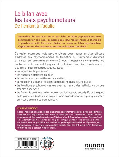 Ce vade-mecum des tests psychomoteurs pour mener un bilan efficace s’adresse aux psychomotriciens en formation ou fraîchement diplômés et à ceux qui souhaitent se mettre à jour. Il propose de comprendre les soubassements méthodologiques et techniques du bilan psychomoteur, que ce soit pour l’enfant ou l’adulte, avec :