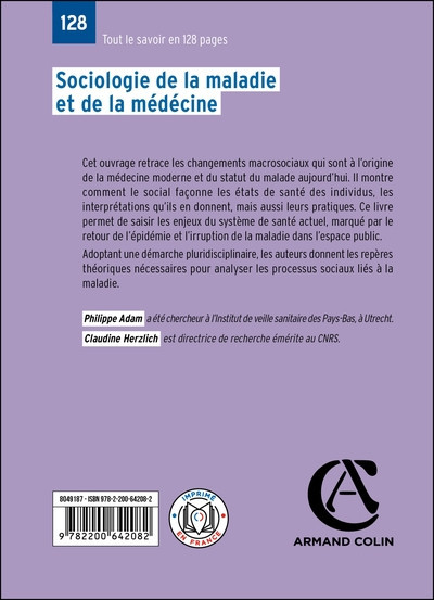 Cet ouvrage retrace les changements macro-sociaux qui sont à l'origine de la Médecine moderne et du statut du malade aujourd'hui. Il montre comment le social façonne les états de santé des individus, les interprétations qu'ils en donnent, mais aussi leurs pratiques. Ce livre permet de saisir les enjeux du système de santé actuel, marqué par le retour de l'épidémie et l'irruption de la maladie dans l'espace public.