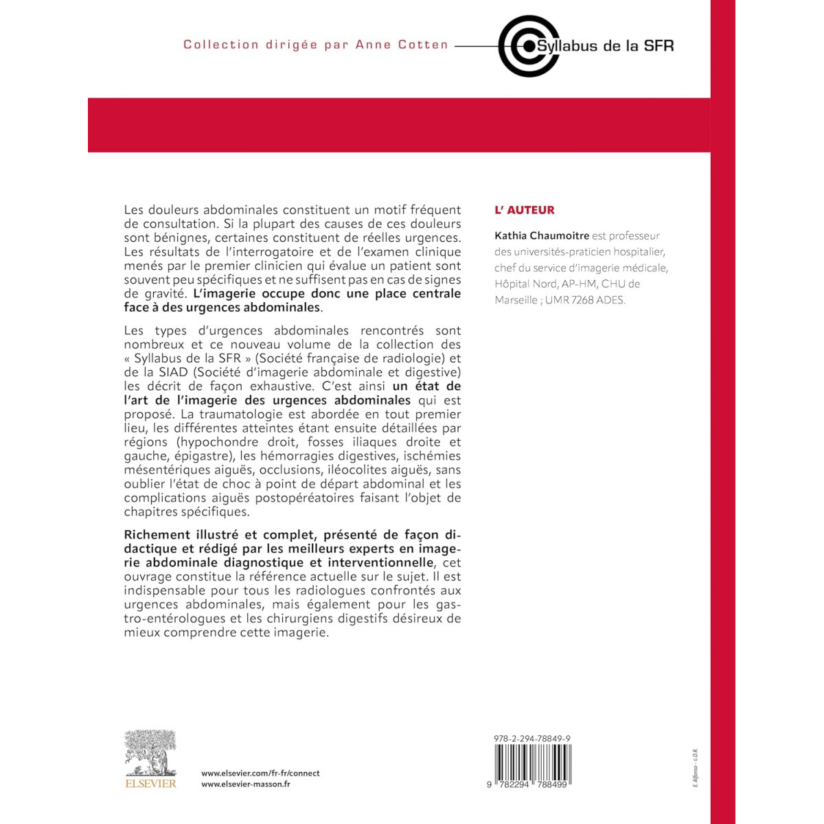 Les types d'Urgences abdominales rencontrés sont nombreux et ce nouveau volume de la collection des ' Syllabus de la SFR ' (Société Française de Radiologie) et de la SIAD (Société d'Imagerie Abdominale et Digestive) les décrit de façon exhaustive. C'est ainsi un état de l'art de l'Imagerie des Urgences abdominales qui est proposé. La Traumatologie est abordée en tout premier lieu, les différentes atteintes étant ensuite détaillées par régions (hypochondre droit, fosses iliaques droite et gauche, épigastre), les hémorragies digestives, ischémies mésentériques aiguës, occlusions iléocolites aiguës , sans oublier l'état de choc à point de départ abdominal et les complications aiguës postopératoires faisant l'objet de chapitres spécifiques.