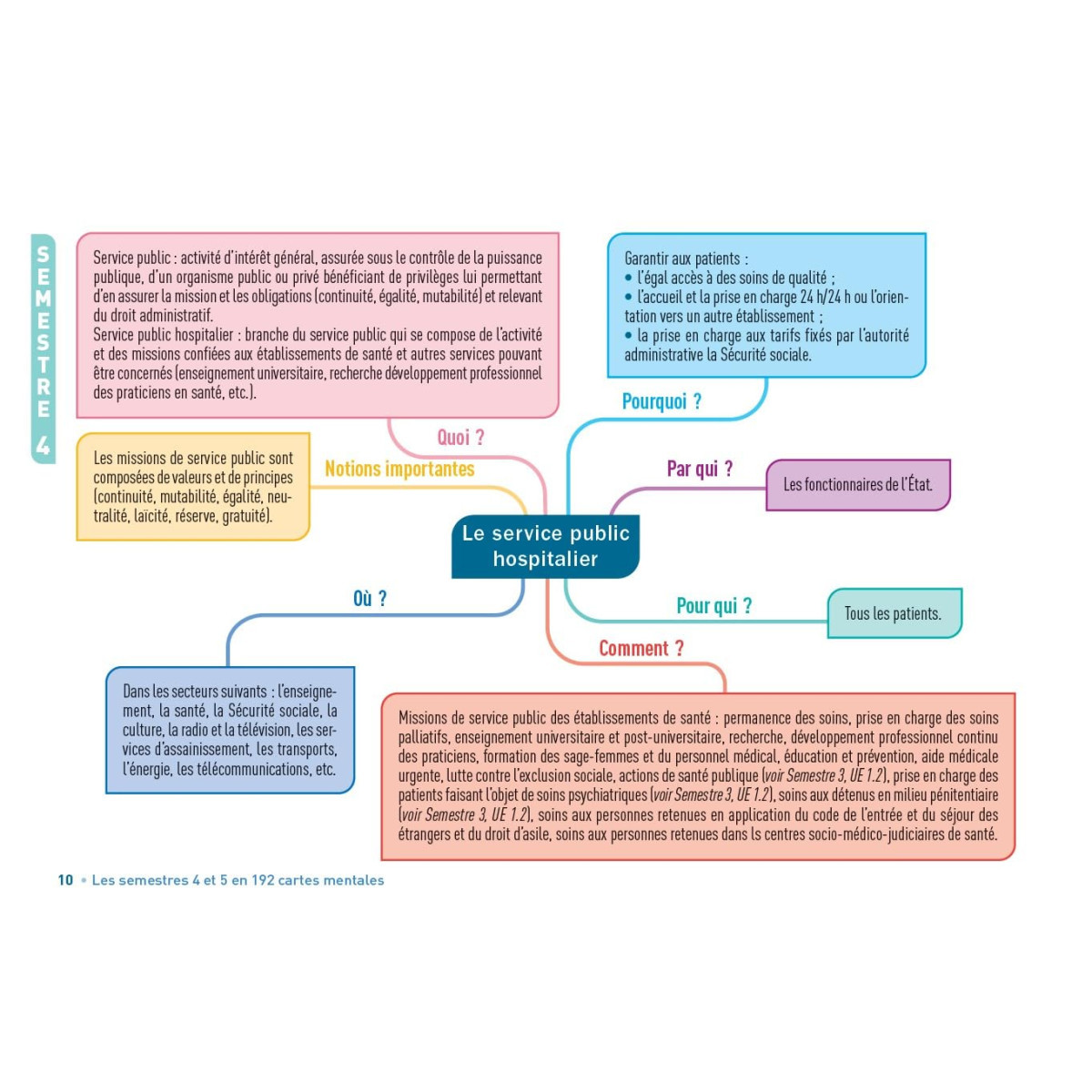 192 cartes mentales pour réviser tout le cours des semestres 4 et 5 ! Les cartes mentales, ou mind map, constituent une méthode de révision efficace, synthétique et didactique : elles permettent de revoir en un coup d'œil toutes les notions à connaître pour réussir ses évaluations en IFSI. Visuelles et colorées, elles abordent tous les aspects et/ou composantes de chaque thématique au programme pour permettre une mémorisation efficace, UE par UE.