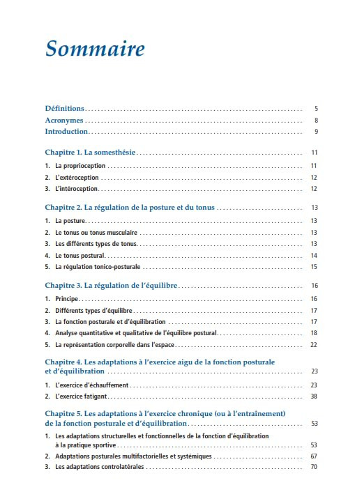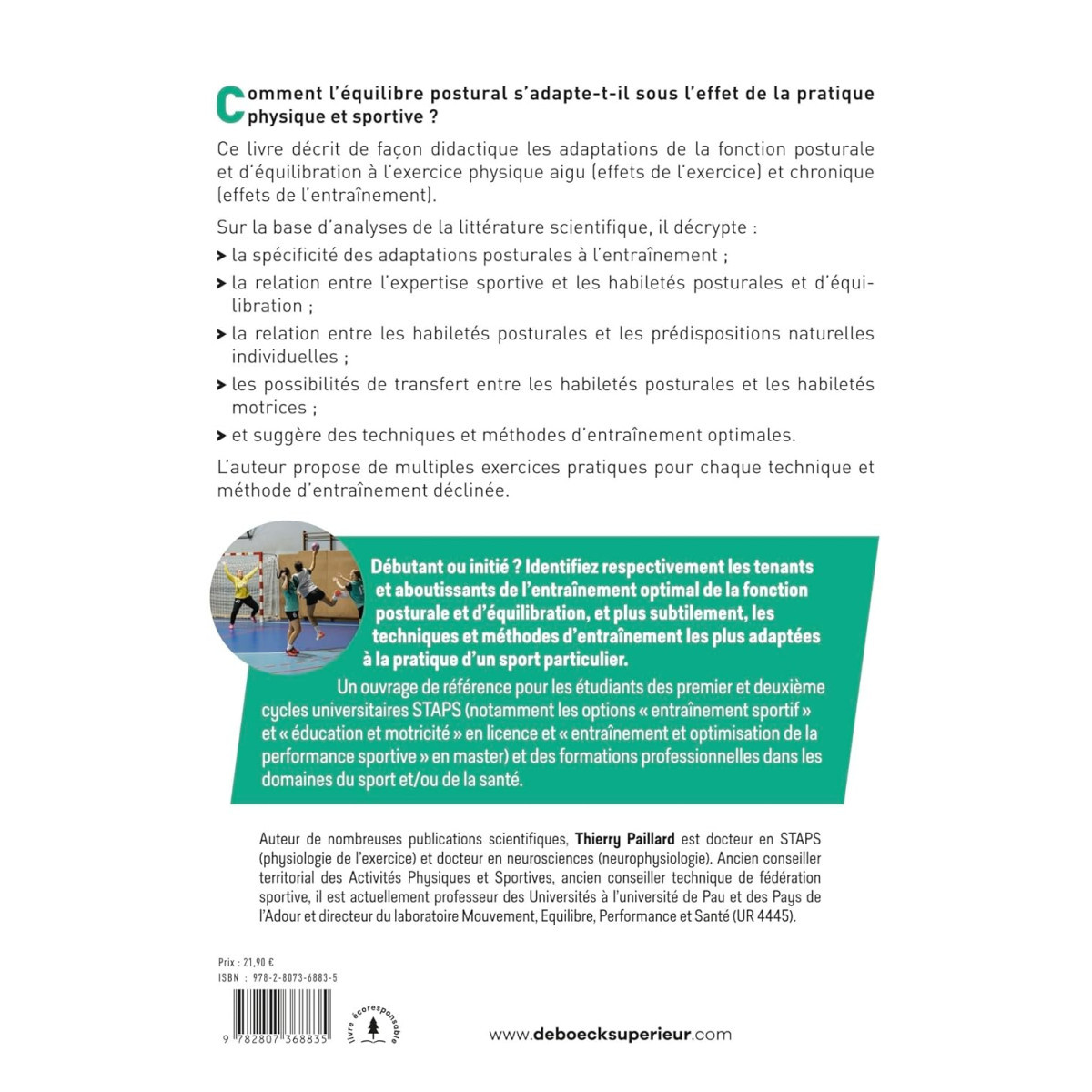 Ce livre décrit de façon didactique les adaptations de la fonction posturale et d’équilibration à l’exercice physique aigu (effets de l’exercice) et chronique (effets de l’entraînement).