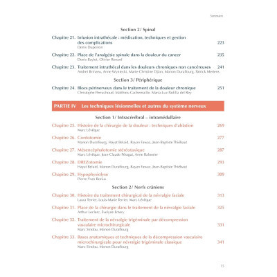 Les techniques de neuromodulation électrique ou pharmacologique et les techniques lésionnelles du système nerveux, détaillées par des experts et regroupées en sections thématiques ;