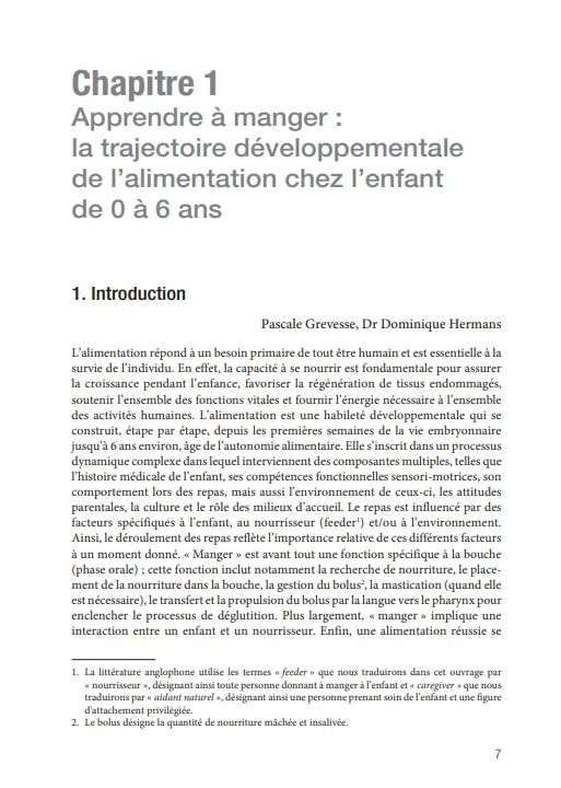 - Un panorama des jalons sensorimoteurs et cognitifs de l’alimentation de 0 à 6 ans ;