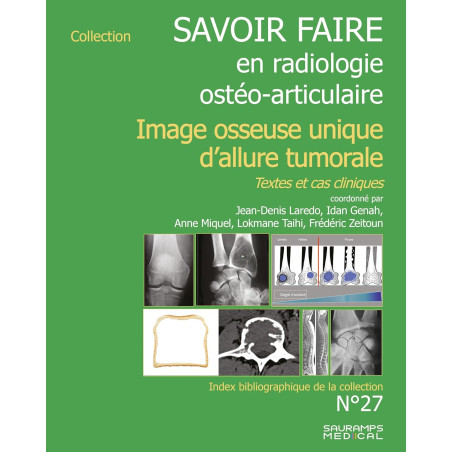 Ce vingt-septième numéro du Savoir-Faire en Radiologie ostéo-articulaire « Diagnostic et conduite à tenir devant une image osseuse unique d’allure tumorale » propose une analyse sémiologique méthodique des signes radiologiques et surtout des indices radiologiques sur l’activité de l’image et la nécessité par exemple de recourir à un avis spécialisé et une biopsie. Une méthode de raisonnement est donnée pour chaque élément de l’image, ainsi que la façon d’en faire la synthèse. L’apport des nouvelles séquences IRM et de la tomographie à émission de positons est précisé. La seconde partie du livre détaille les signes radiologiques des principales causes d’image unique tumorale ou d’allure tumorale. Cette analyse radiologique est complétée par des cas cliniques représentatifs. Les sujets les plus complexes sont complétés d’exercices sous forme de Quizz/cas cliniques commentés avec analyse fine de la sémiologie radiologique qui permettent de mobiliser les connaissances théoriques.