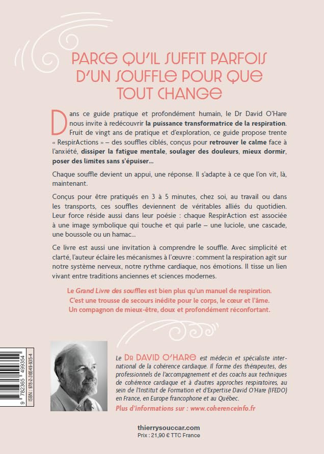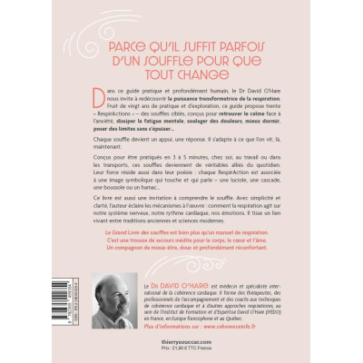 Dans ce guide pratique et profondément humain, le Dr David O’Hare nous invite à redécouvrir la puissance transformatrice de la respiration. Fruit de vingt ans de pratique et d’exploration, ce guide propose trente « RespirActions » – des souffles ciblés, conçus pour retrouver le calme face à l’anxiété, dissiper la fatigue mentale, soulager des douleurs, mieux dormir, poser des limites sans s’épuiser…Chaque souffle devient un appui, une réponse. Il s’adapte à ce que l’on vit, là, maintenant.