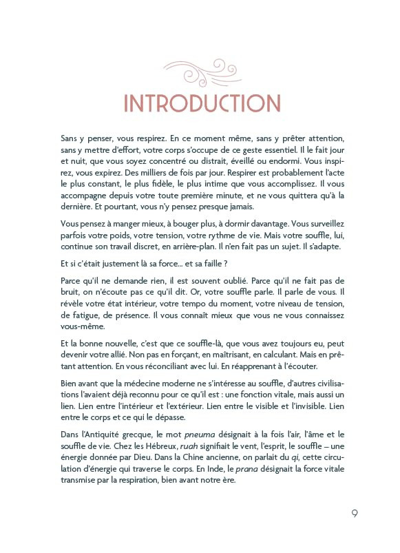 Le Grand Livre des souffles est bien plus qu’un manuel de respiration. C’est une trousse de secours inédite pour le corps, le cœur et l’âme.