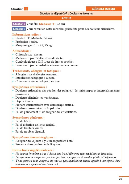 - Les consignes pour l'acteur (ce qu'il faut faire ou ne pas faire, les informations à donner à l'étudiant ou non, etc.) ;