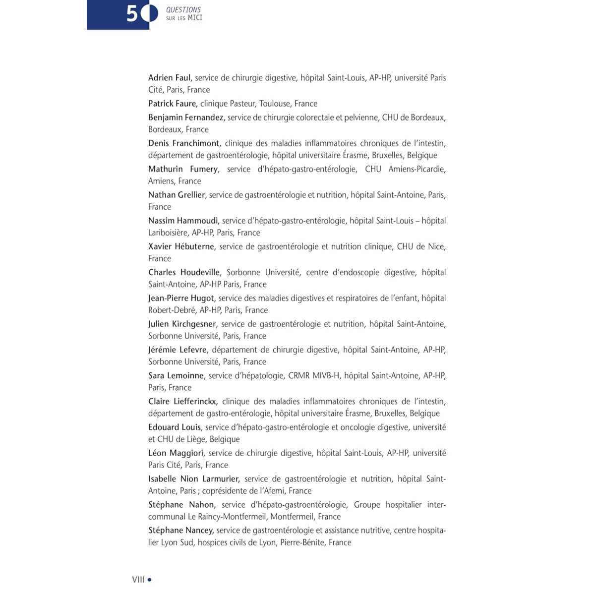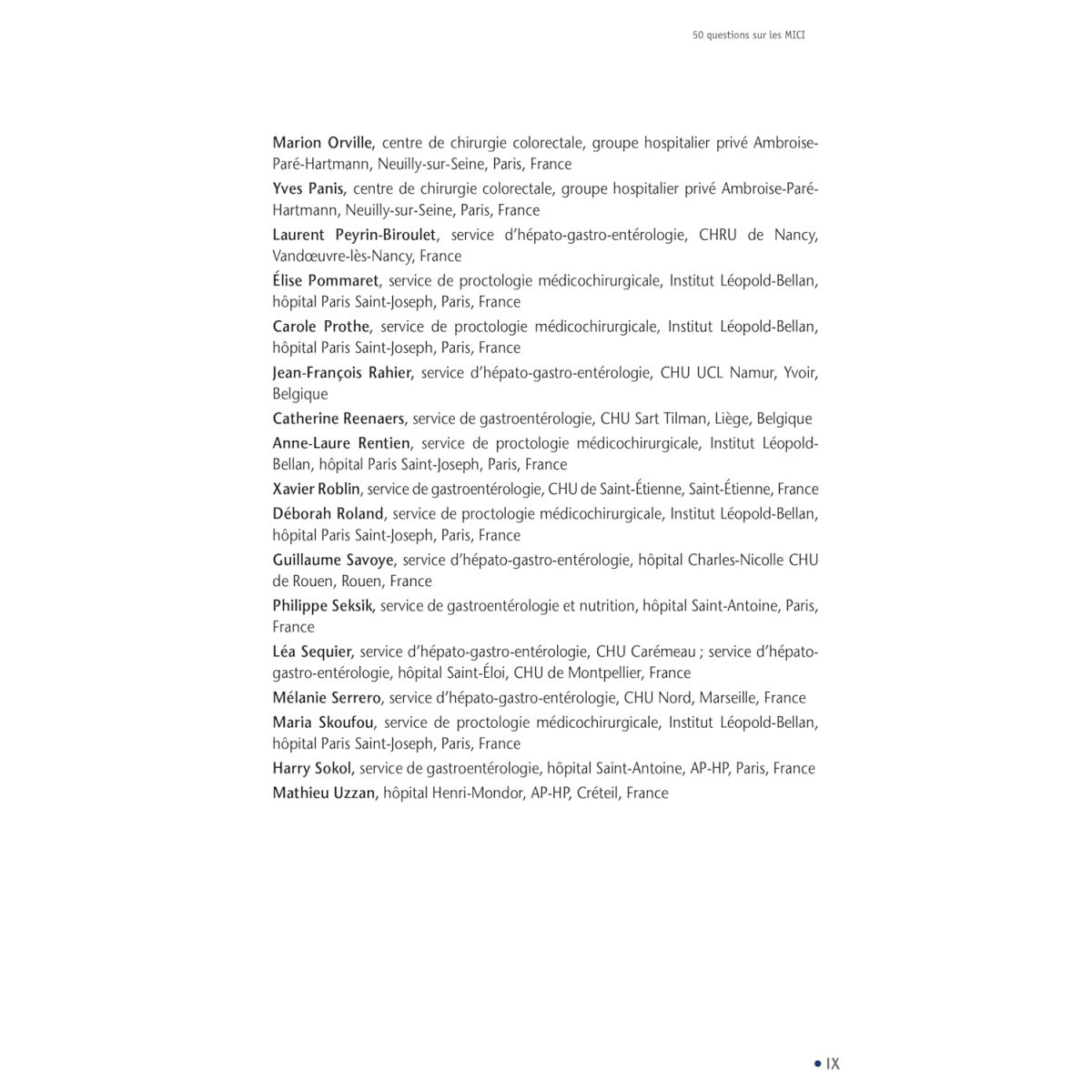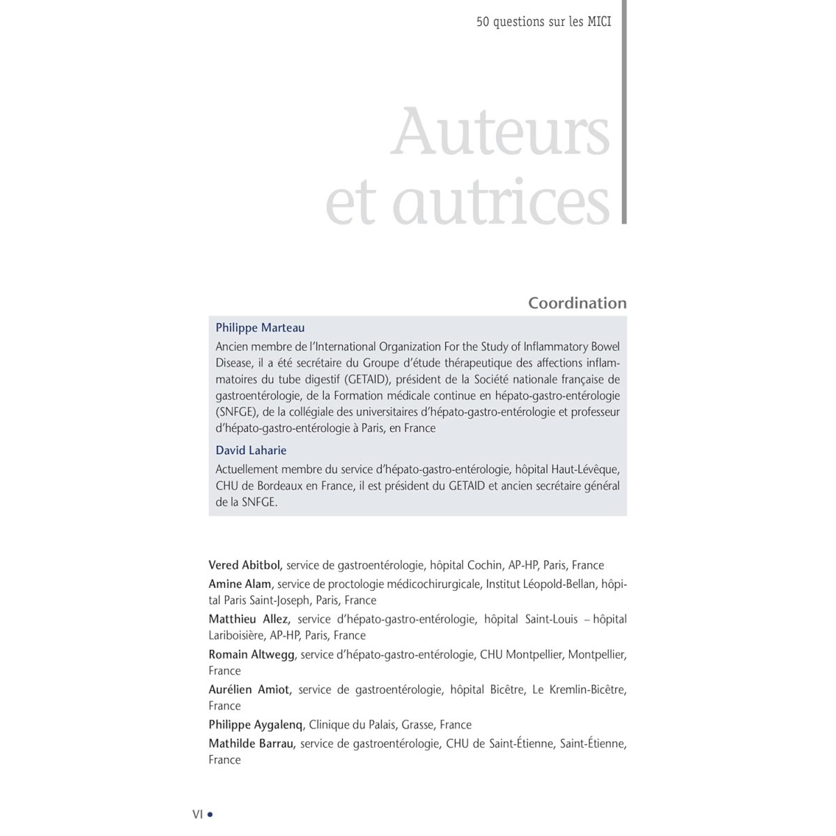 Philippe Marteau : ancien membre de l’International Organization For the Study of Inflammatory Bowel Disease, il a été secrétaire du Groupe d’étude thérapeutique des affections inflammatoires du tube digestif (GETAID), président de la Société nationale française de Gastro-Entérologie, de la Formation médicale continue en Hépato-Gastro-Entérologie (SNFGE), de la collégiale des universitaires d’Hépato-Gastro-Entérologie et professeur d’Hépato-Gastro-Entérologie à Paris.