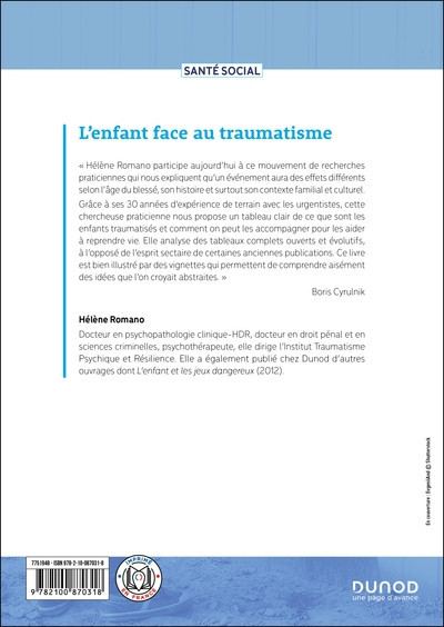« Hélène Romano participe aujourd’hui à ce mouvement de recherches praticiennes qui nous expliquent qu’un événement aura des effets différents selon l’âge du blessé, selon son histoire et surtout selon son contexte familial et culturel.
