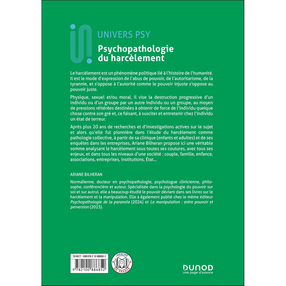 Après plus 20 ans de recherches et d’investigations actives sur le sujet et alors qu’elle fut pionnière dans l’étude du harcèlement comme pathologie collective, à partir de sa clinique (enfants et adultes) et de ses enquêtes dans les entreprises, l'auteur propose ici une véritable somme analysant le harcèlement sous toutes ses coutures et ses enjeux, et dans tous les domaines : couple, famille, enfance, entreprise, institution, État…