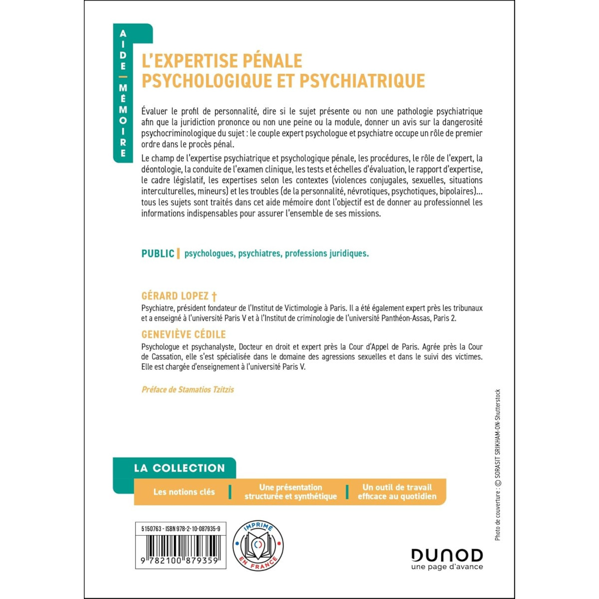 Le champ de l’expertise psychiatrique et psychologique pénale, les procédures, le rôle de l’expert, la Déontologie, la conduite de l’examen clinique, les tests et échelles d'évaluation, le rapport d’expertise, le cadre législatif, les expertises selon les contextes (violences conjugales, sexuelles, situations interculturelles, mineurs) et troubles (de la personnalité, névrotiques, psychotiques, bipolaires)… tous les sujets sont traités dans cet aide mémoire dont l’objectif est de donner au professionnel les informations indispensables pour assurer l’ensemble de ses missions.