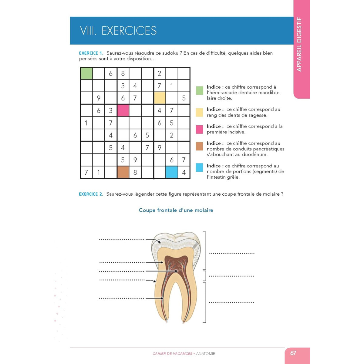 Ce cahier de vacances permet d'apprendre l'Anatomie tout en s'amusant. De manière ludique, vous découvrirez de quoi est constitué le corps humain.