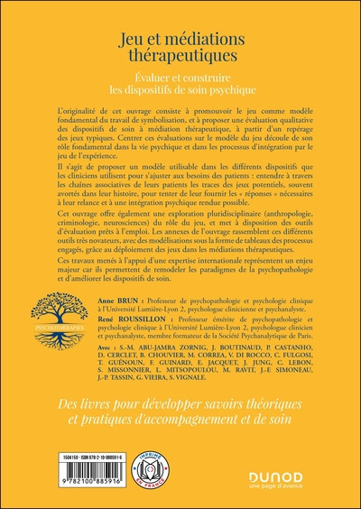 L’originalité de cet ouvrage consiste à promouvoir le jeu comme modèle fondamental du travail de symbolisation et à proposer une évaluation qualitative des dispositifs de soin à médiation thérapeutique, à partir d’un repérage des jeux typiques. Centrer ces évaluations sur le modèle du jeu découle de son rôle fondamental dans la vie psychique et dans les processus d’intégration par le jeu de l’expérience. Il s’agit de proposer un modèle utilisable dans les différents dispositifs que les cliniciens utilisent pour s’ajuster aux besoins des patients : entendre à travers les chaînes associatives de leurs patients les traces des jeux potentiels, souvent avortés dans leur histoire, pour tenter de leur fournir les « réponses » nécessaires à leur relance et à une intégration psychique rendue possible.