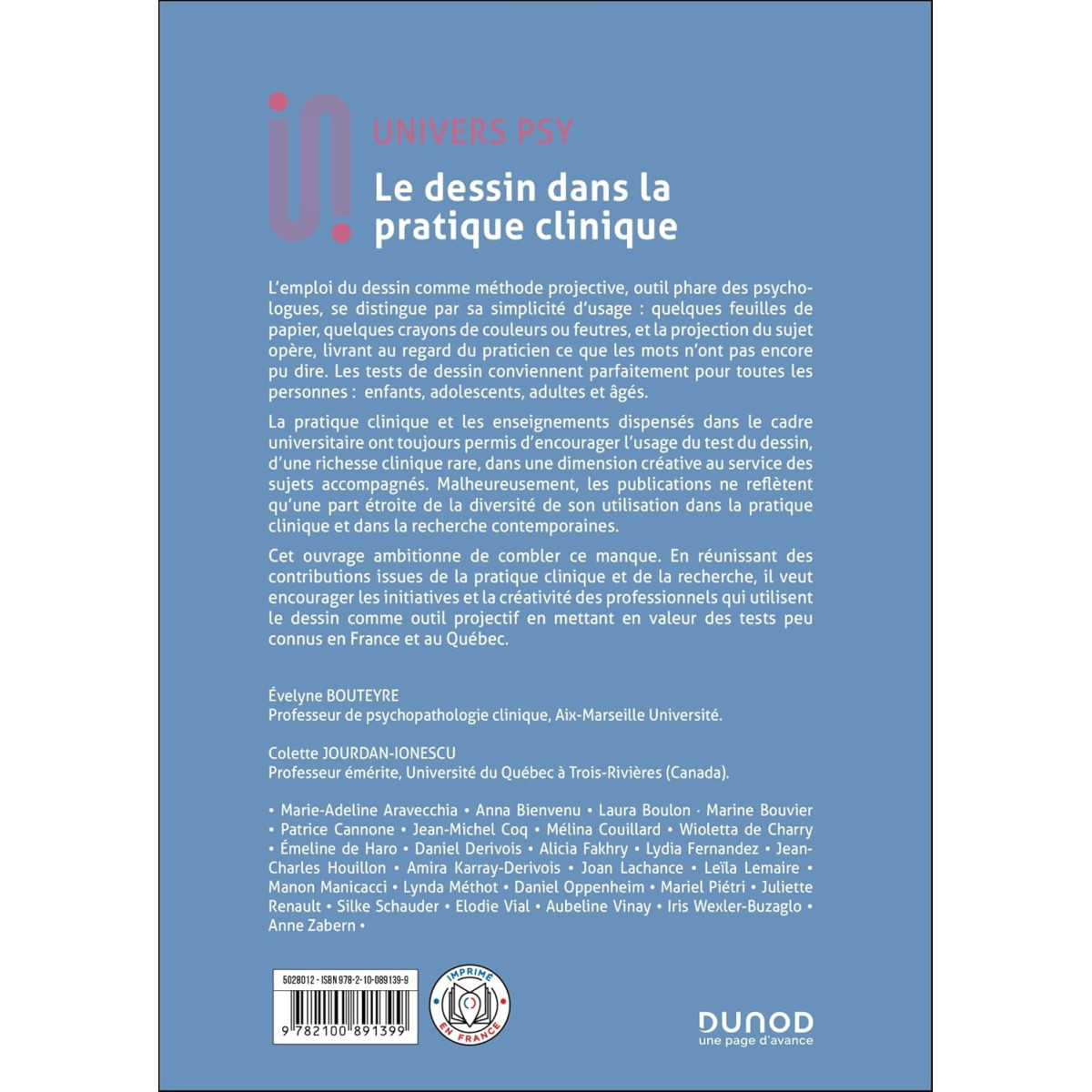 La pratique clinique et les enseignements dispensés dans le cadre universitaire ont toujours permis d'encourager l'usage du test du dessin, d'une richesse clinique rare, dans une dimension créative au service des sujets accompagnés. Malheureusement, les publications ne reflètent qu'une part étroite de la diversité de son utilisation dans la pratique clinique et dans la recherche contemporaines. Cet ouvrage ambitionne de combler ce manque.