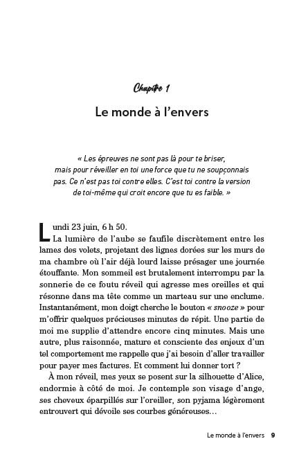 Un roman initiatique intense, mêlant émotions, tension psychologique et quête de sens, pour ceux qui n'en peuvent plus de subir leur quotidien.