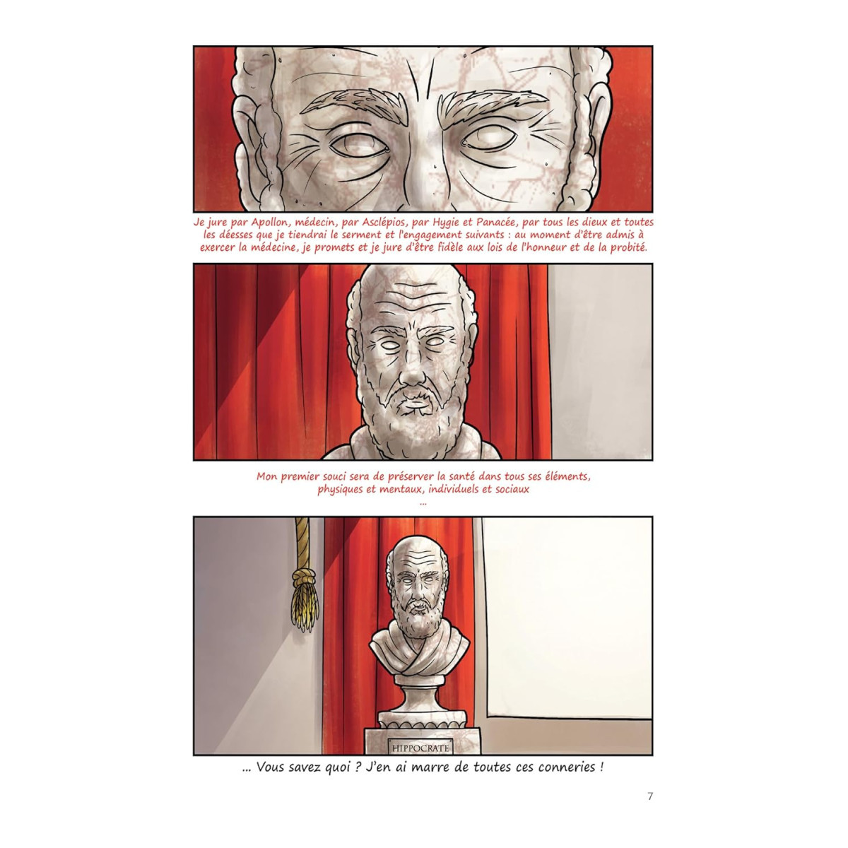 Je jure par Apollon, Asclépios, Hygie et Panacée, par tous les dieux et toutes les déesses, le serment et l'engagement suivant :