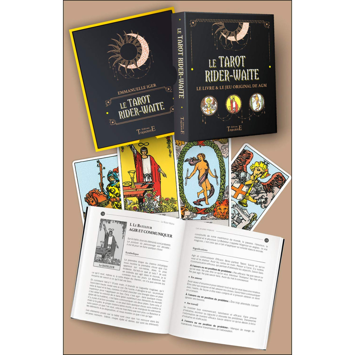 Le Rider-Waite est le tarot le plus utilisé au monde. Sa structure est la même que celle du tarot de Marseille ; cependant, ses cartes mineures figuratives le rendent intuitif et facile d’accès. C’est un puissant guide de développement qui permet de mettre en évidence des mécanismes inconscients afin de mieux se comprendre, faire les bons choix, et se bâtir un avenir harmonieux. L’ouvrage d’Emmanuelle Iger fournit une description détaillée des arcanes majeurs et mineurs, leur symbolique et interprétation : tirage à trois cartes ou tirage en croix pour répondre à une question précise, tirage relationnel ou tirage de choix pour évaluer une situation complexe et enfin tirage de la roue astrologique ou de la croix celtique pour susciter une réflexion plus générale. Ce coffret contient le jeu original de 78 lames « Premium Edition » de 1909 créé par A.E. Waite et Pamela Colman Smith publié par AGM-Urania.