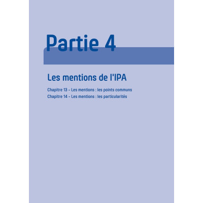 - Partie 4 - Les mentions de l'IPA ; Chapitre 13 - Les mentions : les points communs ; Chapitre 14 - Les mentions : les particularités