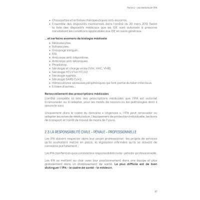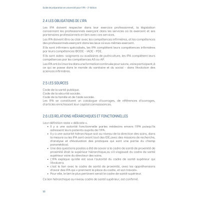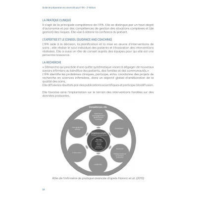 - Partie 2 - L’Infirmier en Pratique Avancée ; Chapitre 4 - La présentation ; Chapitre 5 - Le cadre juridique ; Chapitre 6 - Les modèles structurants de la pratique infirmière avancée ; Chapitre 7 - Les compétences professionnelles ; Chapitre 8 - Le positionnement