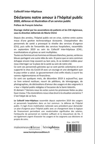 Le gouvernement s'est enfin résolu à ouvrir les vannes réglementaires et financières. Ce sont ces quelques mois, de décembre 2019 à aujourd'hui, que ce livre entend restituer, nourri de pétitions, de témoignages, de photographies, de déclarations d'amour des usagers et des soignants à " leur " hôpital public. Et demain ? Verrons-nous les actes suivre les promesses faites au plus haut niveau ? Ou reviendrons-nous à la situation ancienne ? C'est l'objet de ce livre.