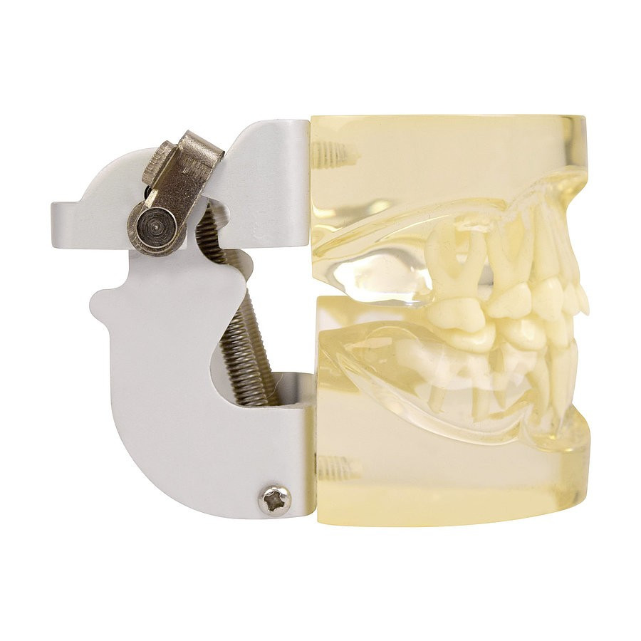 Ce modèle représente l'ensemble de dents d'enfants dans leur taille anatomique naturelle. La mâchoire est transparente sur ce modèle, ce qui permet une excellente visibilité des racines.