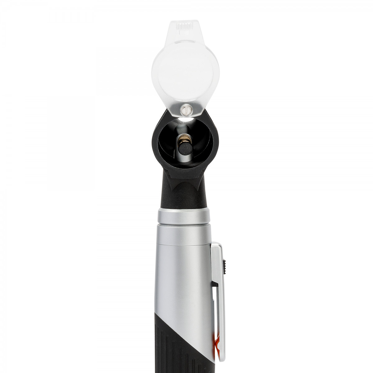 Otoscope de poche moderne avec un design unique et compact. Uniquement combinable avec le système de poignée mini3000. Livrable en noir ou bleu. Intérieur noir mat. Elimine les reflets. Technologie XHL Xénon Halogène, qui apporte 100 % de lumière en plus comparée avec les ampoules classiques. Lumière concentrée, blanche, très claire pour une illumination optimale. Poignée et tête indépendantes. Utilisation simple, poignée combinable avec l’ensemble de la gamme mini3000. Fenêtre d’observation avec un grossissement de 3 fois et surface du boîtier optimisée pour des images des plus précises et des reflets minimisés. Fenêtre d’observation intégrée mais pouvant pivoter sur le côté. Optimal pour intervention avec grossissement. Clip de fixation avec interrupteur intégré. Bonne prise en main de l’instrument. S’éteint automatiquement quand on le remet en poche. 20.000 cycles marche / arrêt garantis. Poignée de haute qualité : Finition chromée / plastique inégalable. Résistant aux chocs, robuste, anti-dérapant. Piles de rechange. Type AA, ou batterie rechargeable avec chargeur mini NT en option