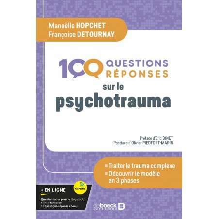Pour comprendre et approfondir vos connaissances et compétences en psychotraumatologie en 100 questions/ réponses et découvrez : le modèle en 3 phases ; les nombreux concepts scientifiques et cliniques provenant de différentes orientations (TCC, psychodynamique, systémique...) et méthodes (EMDR, hypnose,).