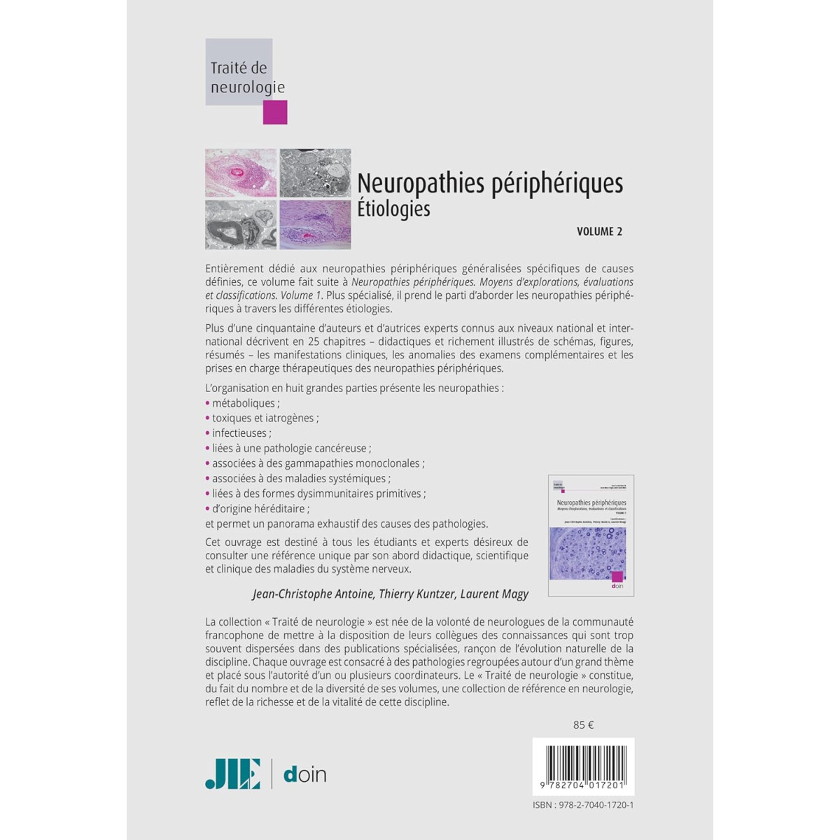 Plus spécialisé, il prend le parti d’aborder les neuropathies périphériques à travers les différentes étiologies. Plus d’une cinquantaine d’auteurs et d’autrices experts connus aux niveaux national et international décrivent en 25 chapitres – didactiques et richement illustrés de schémas, figures, résumés – les manifestations cliniques, les anomalies des examens complémentaires et les prises en charge thérapeutiques des neuropathies périphériques.